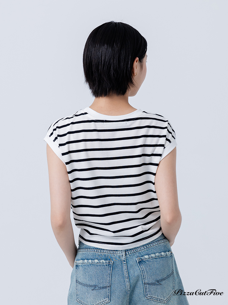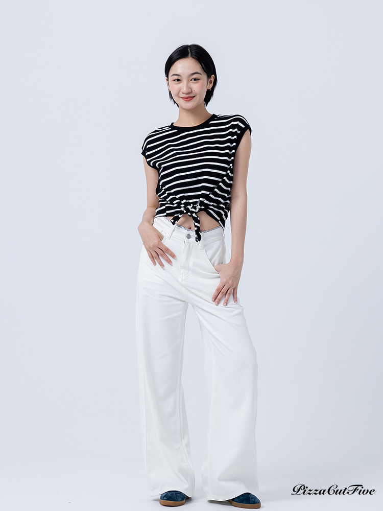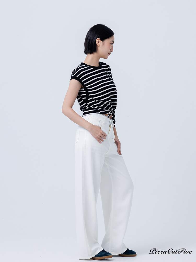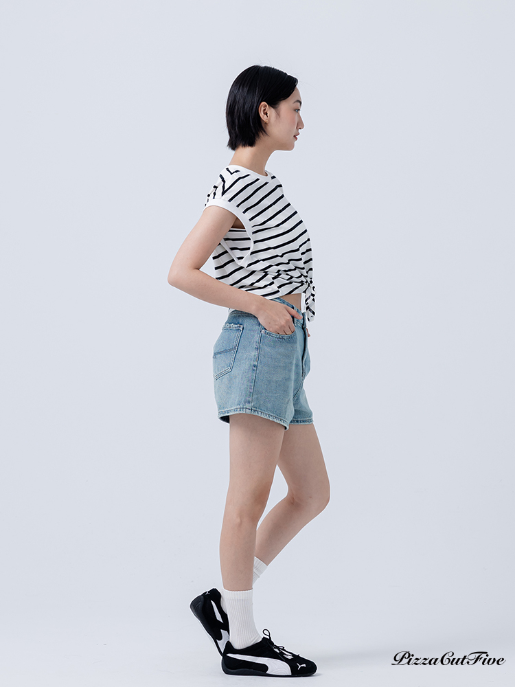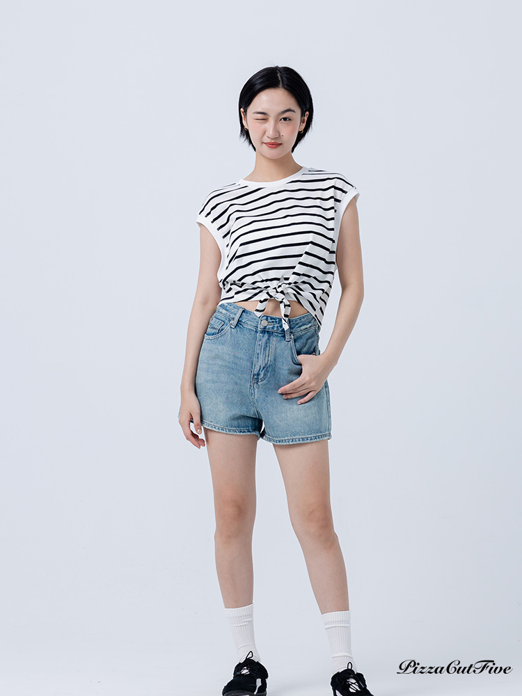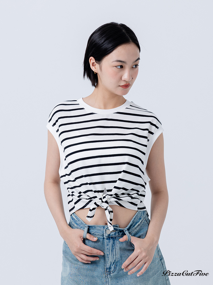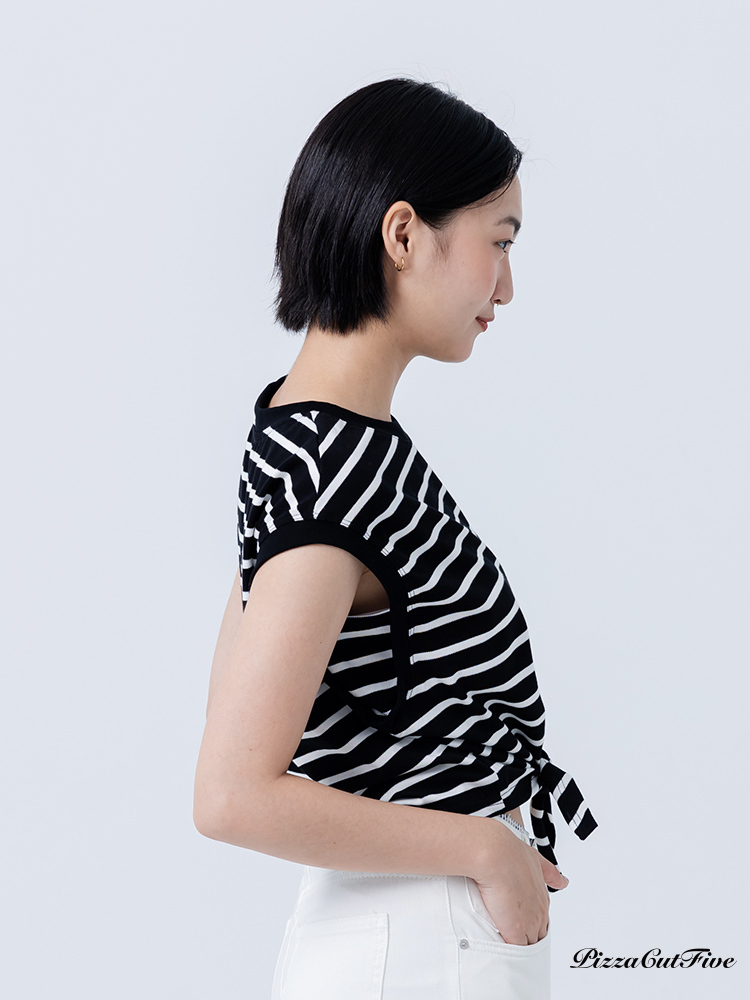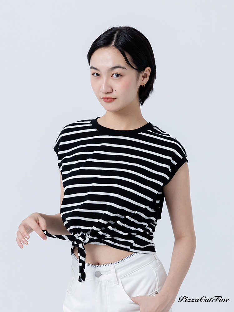 [SALE]百搭綁帶條紋短袖上衣 PizzaCutFive PCF252404026
