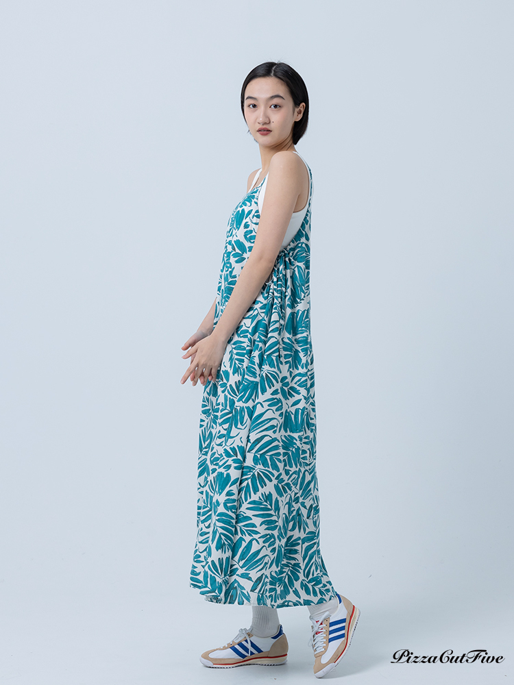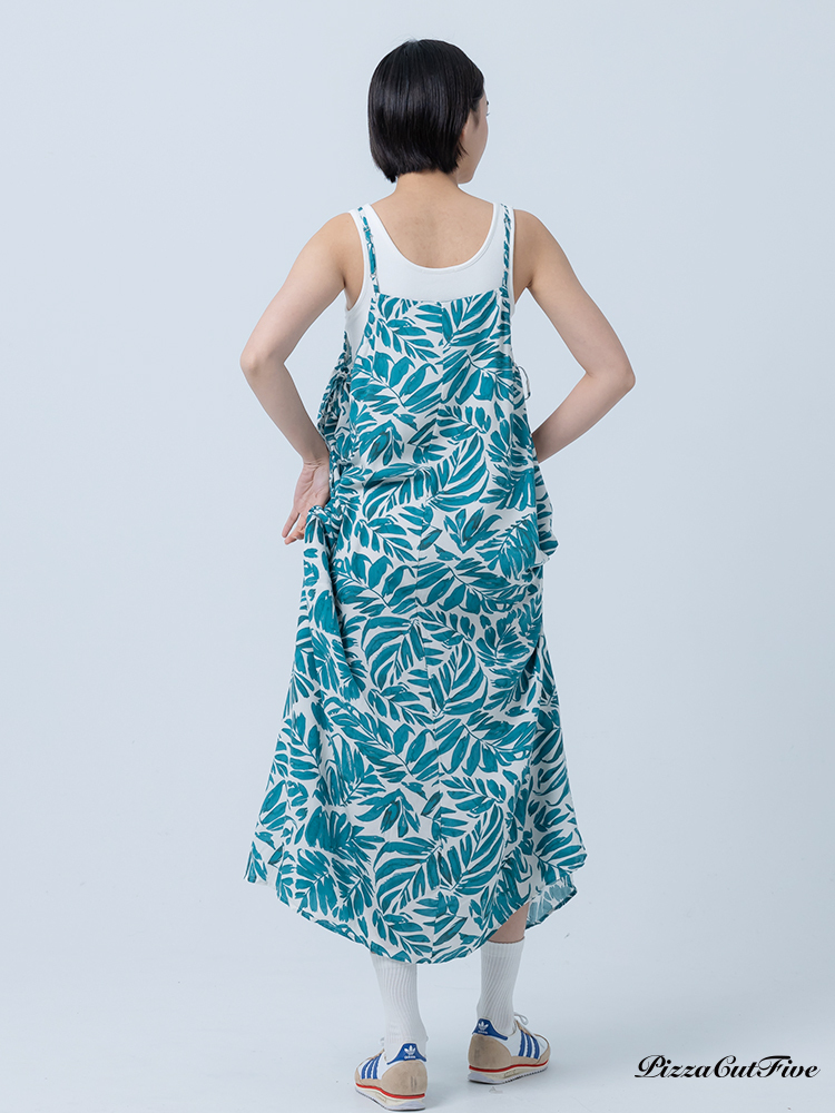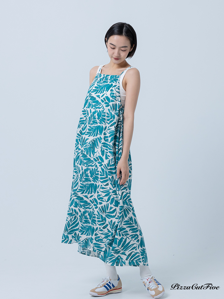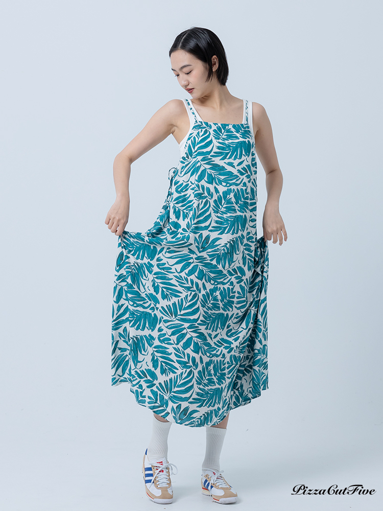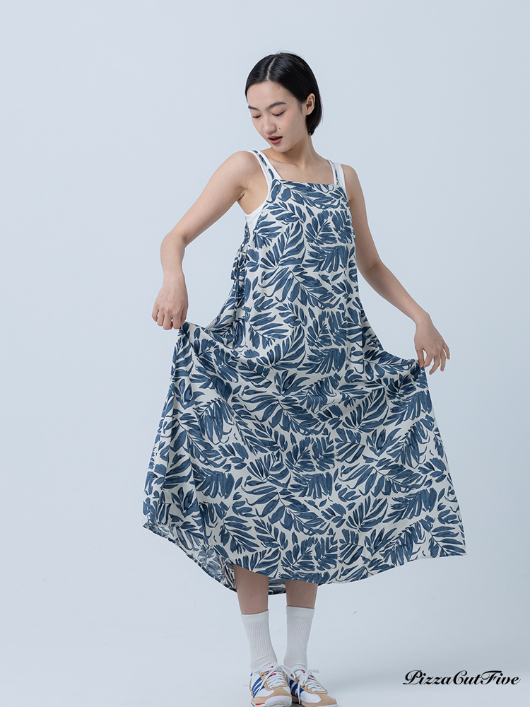 [兩件1580|涼感洋裝]塗鴉感葉子側綁繩細肩洋裝 PizzaCutFive PCF252487008