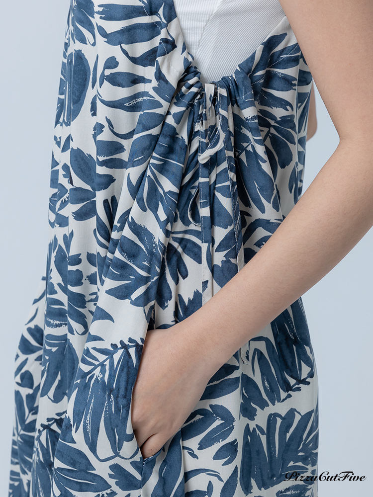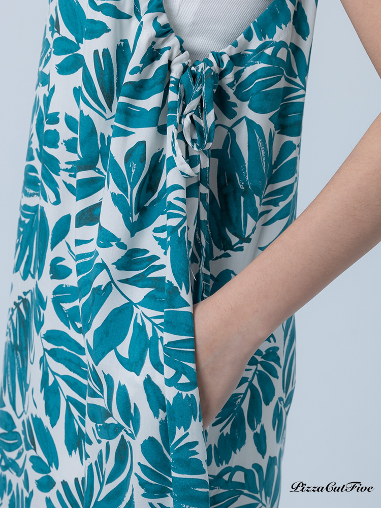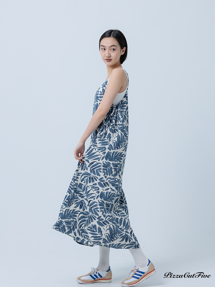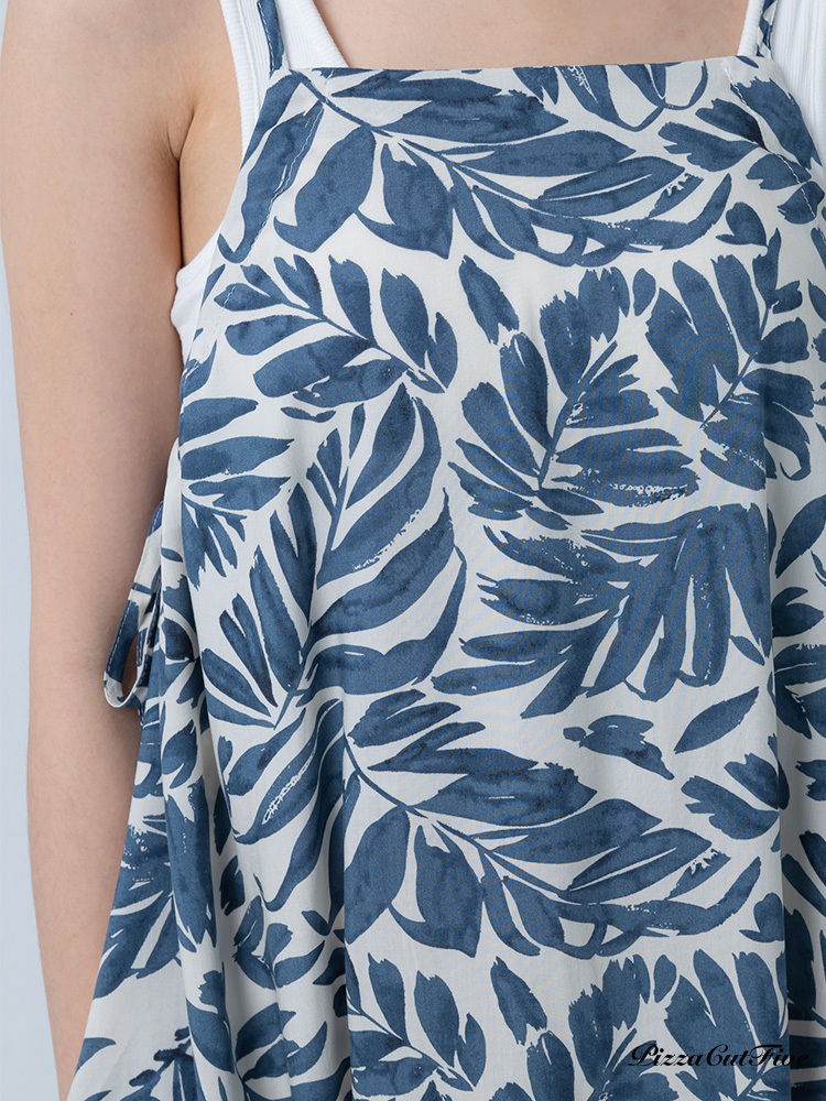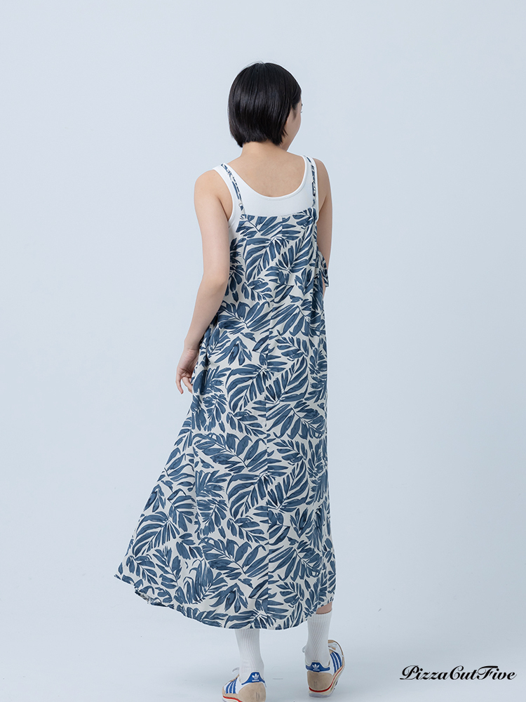 [兩件1580|涼感洋裝]塗鴉感葉子側綁繩細肩洋裝 PizzaCutFive PCF252487008