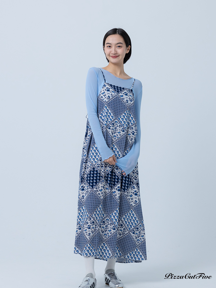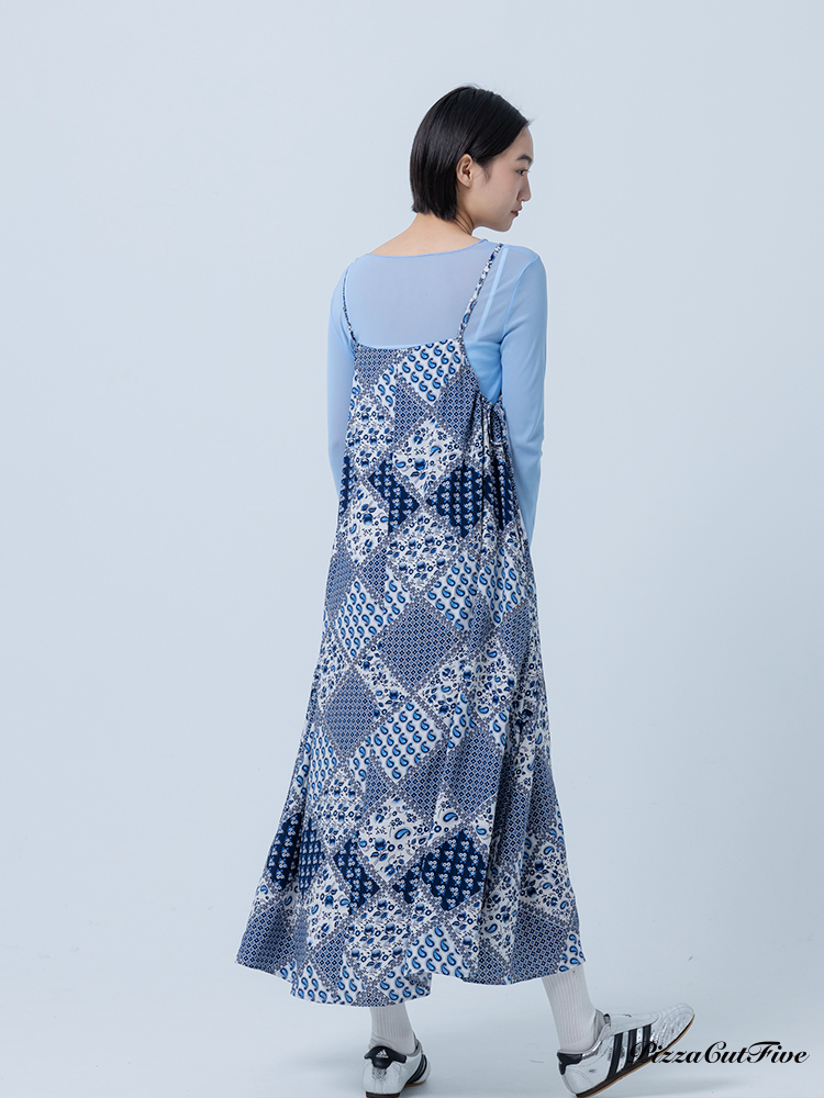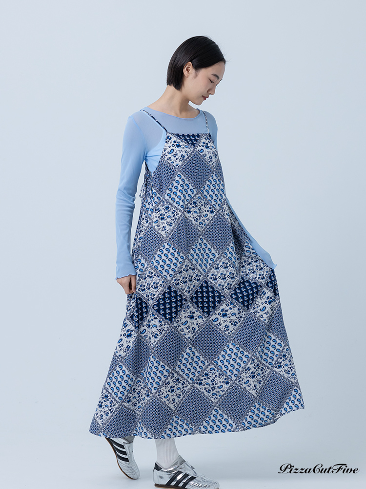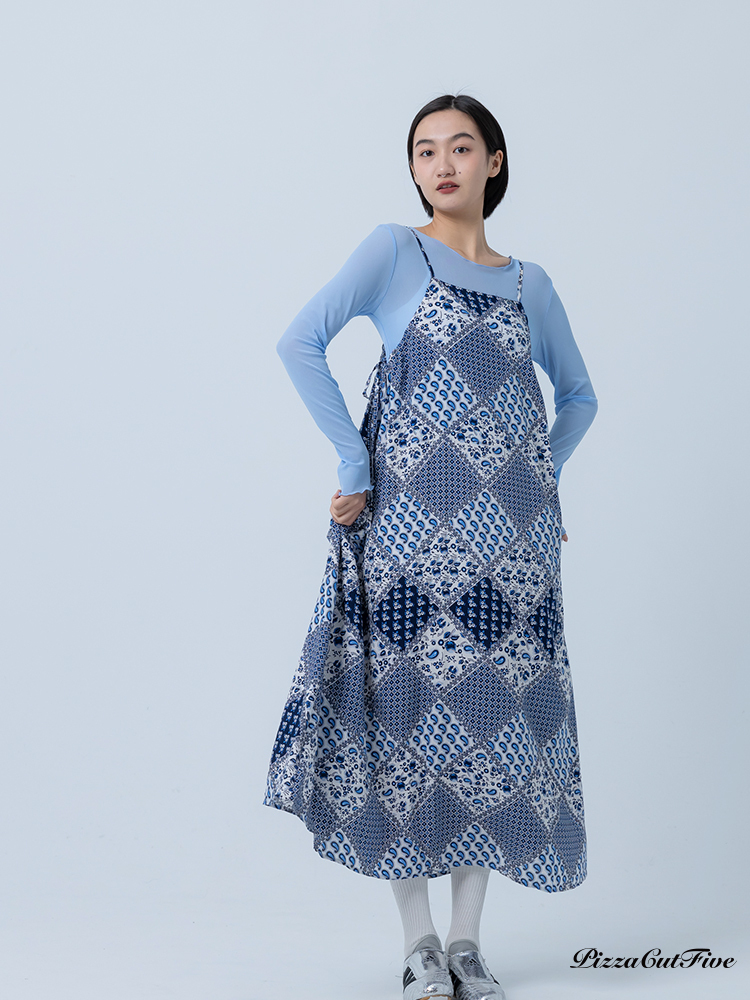 [兩件1580|涼感洋裝]佩斯利圖騰側綁繩細肩洋裝 PizzaCutFive PCF252487009