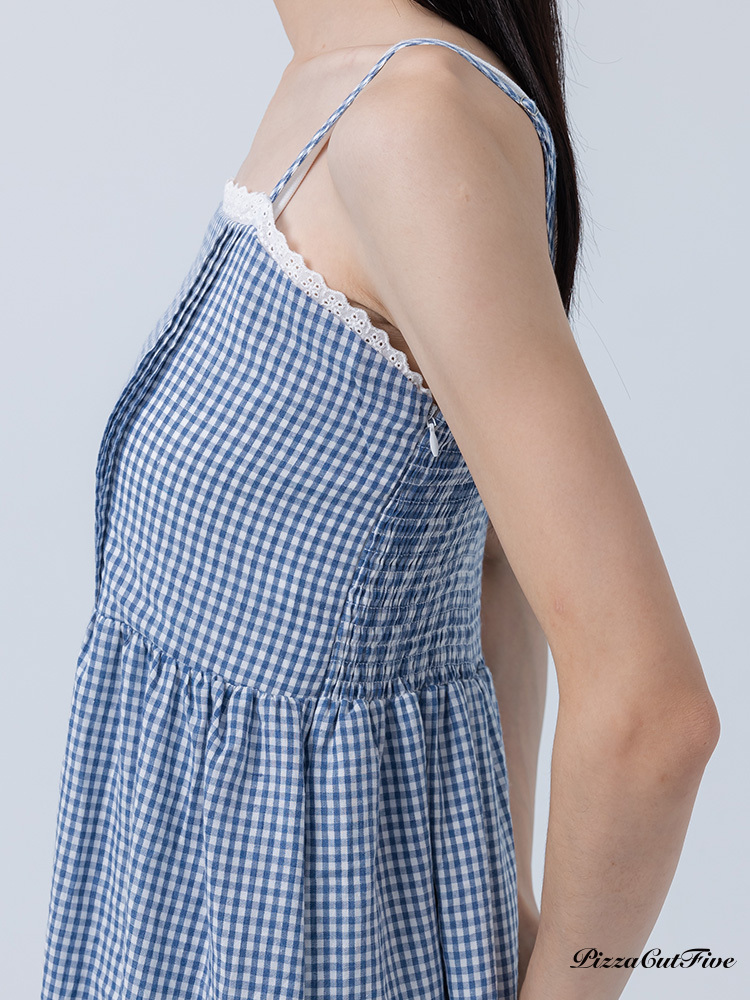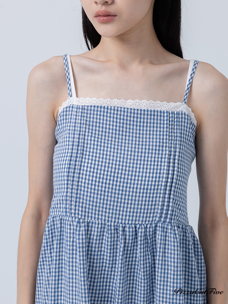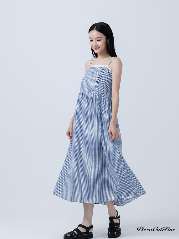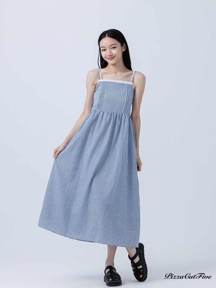 花邊格紋平口細肩洋裝 PizzaCutFive PCF252487084