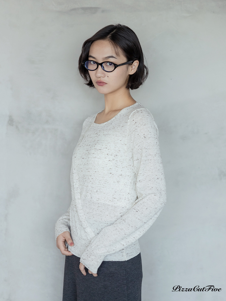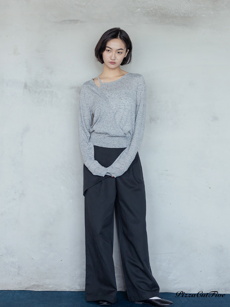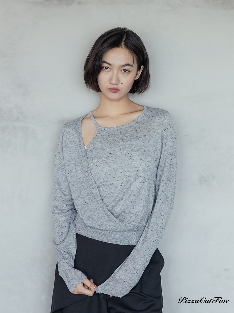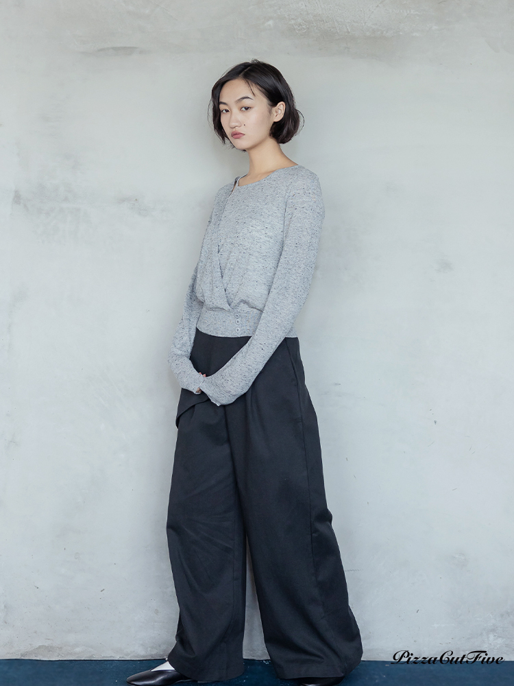 。下擺縮口設計自然放在腰胯上,讓視覺有腰身感