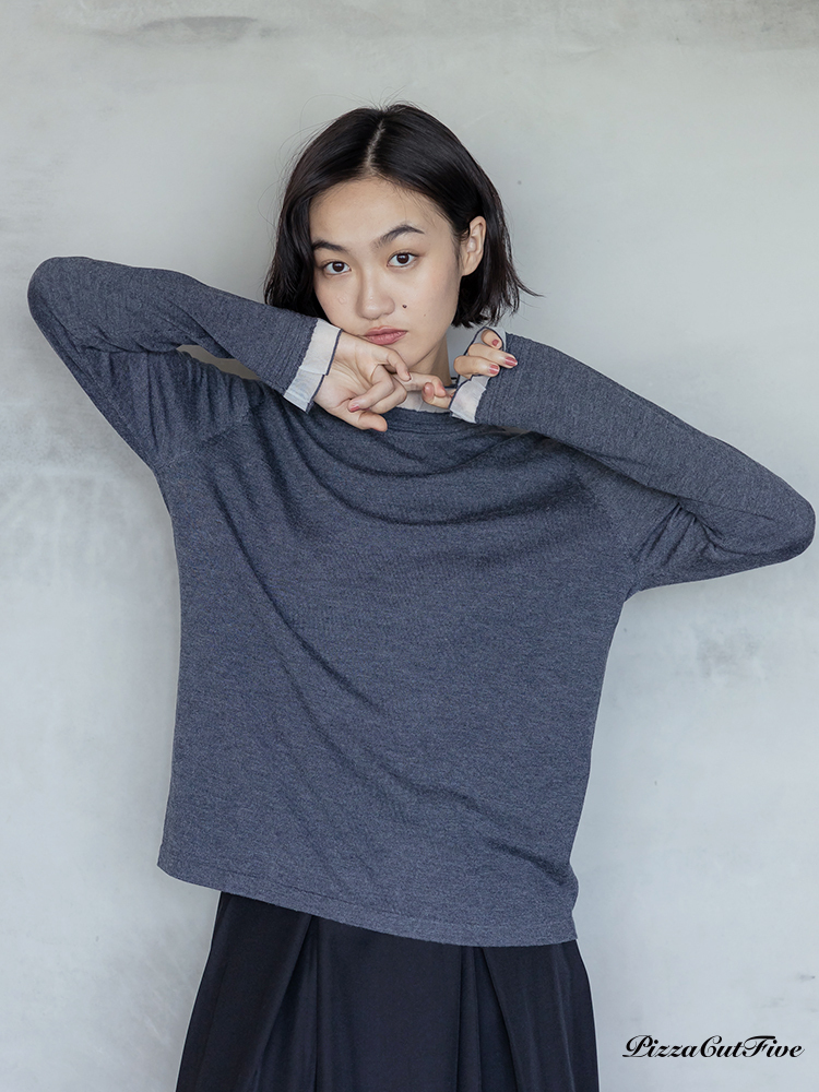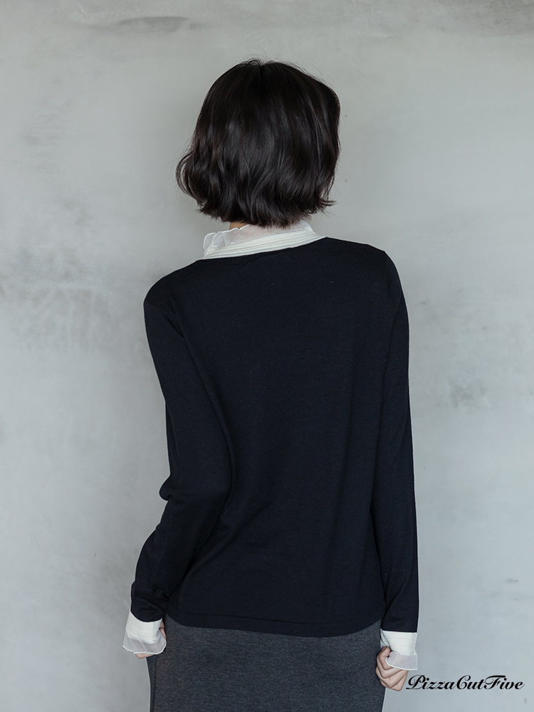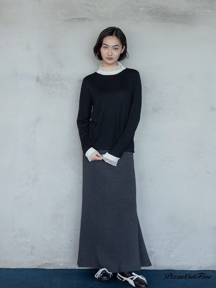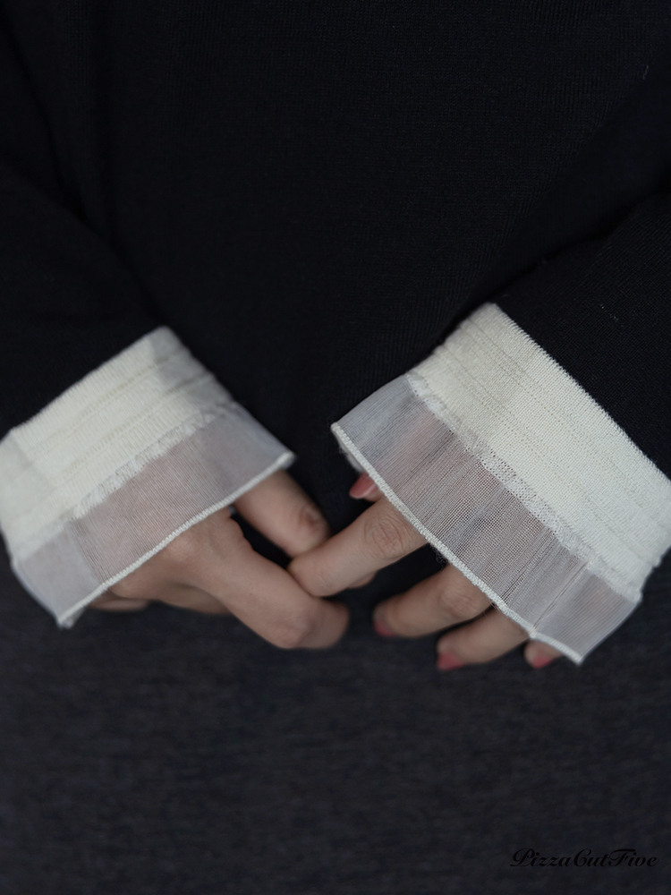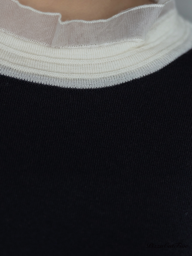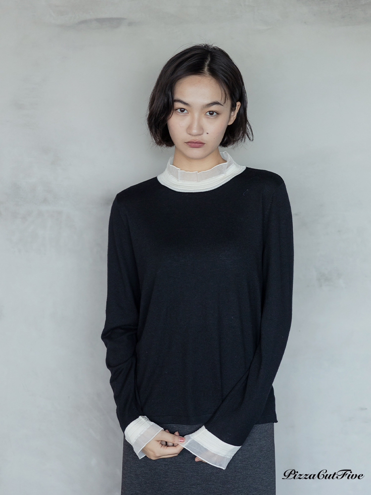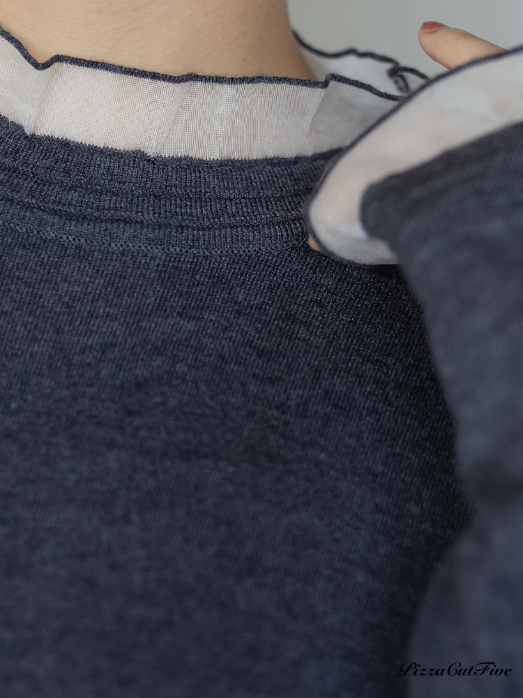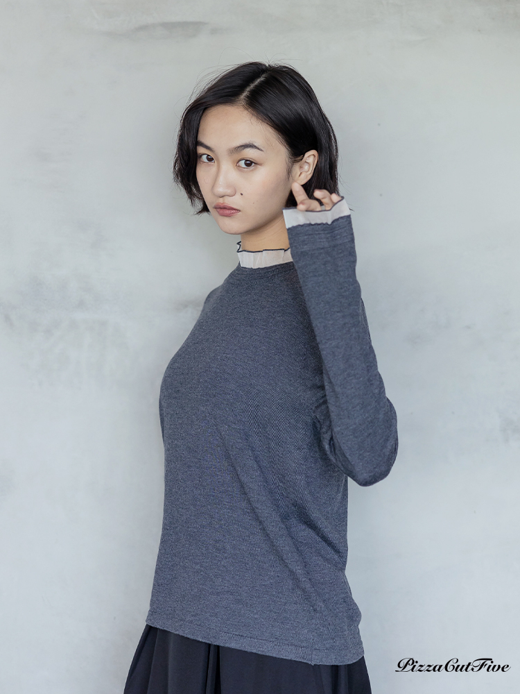 高領透紗拼接長袖上衣 PizzaCutFive PCF253403053