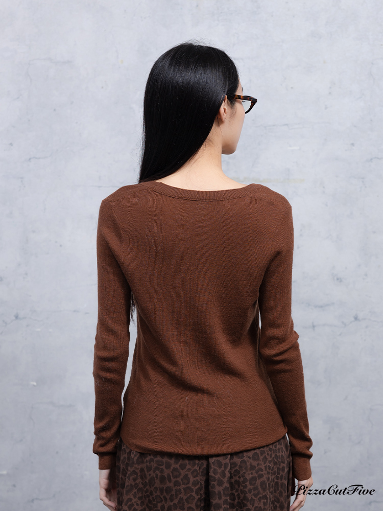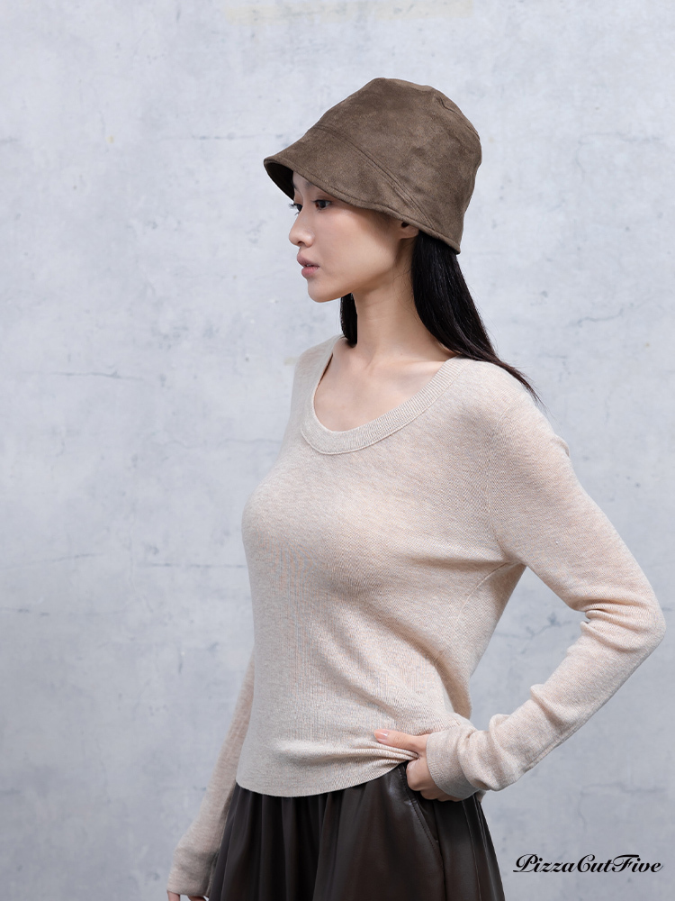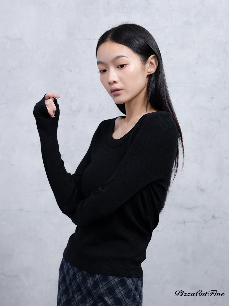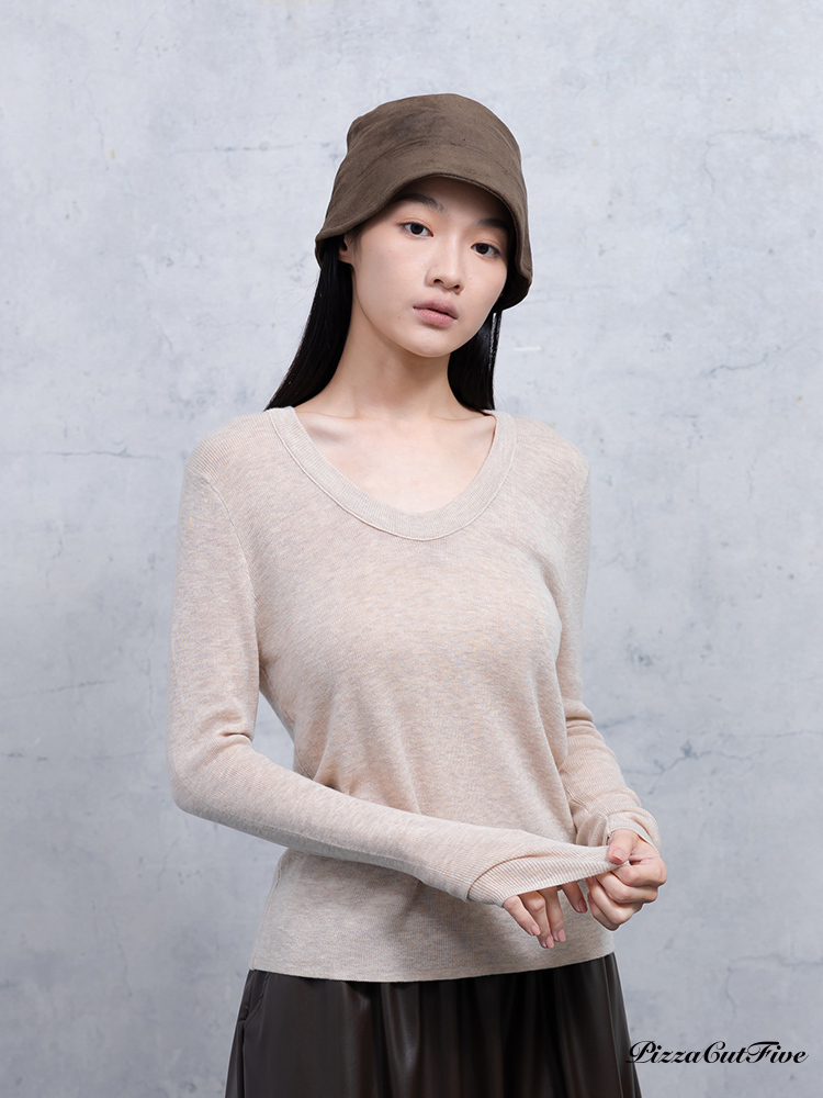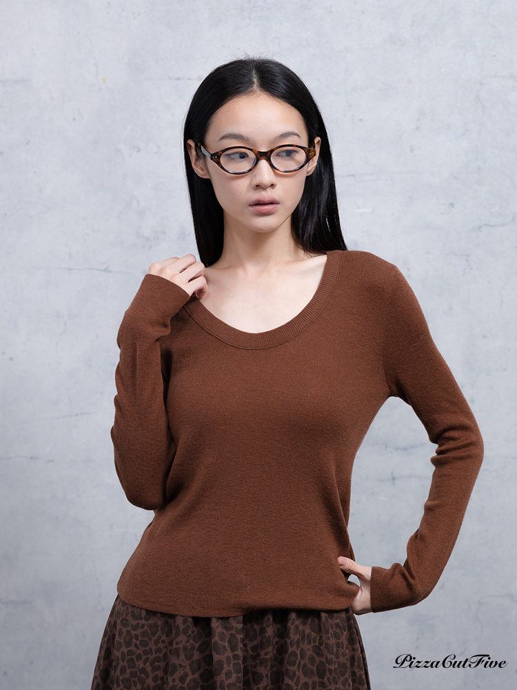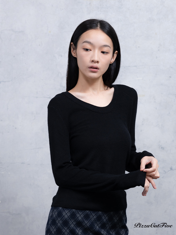 U領長袖針織上衣 PizzaCutFive PCF253403059