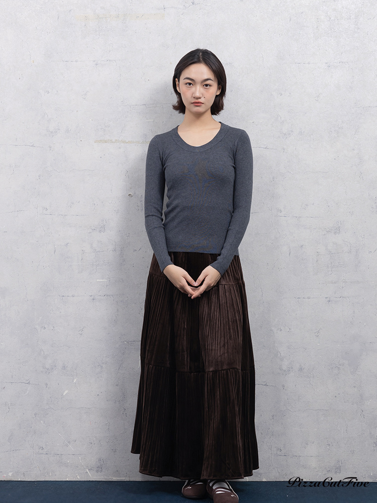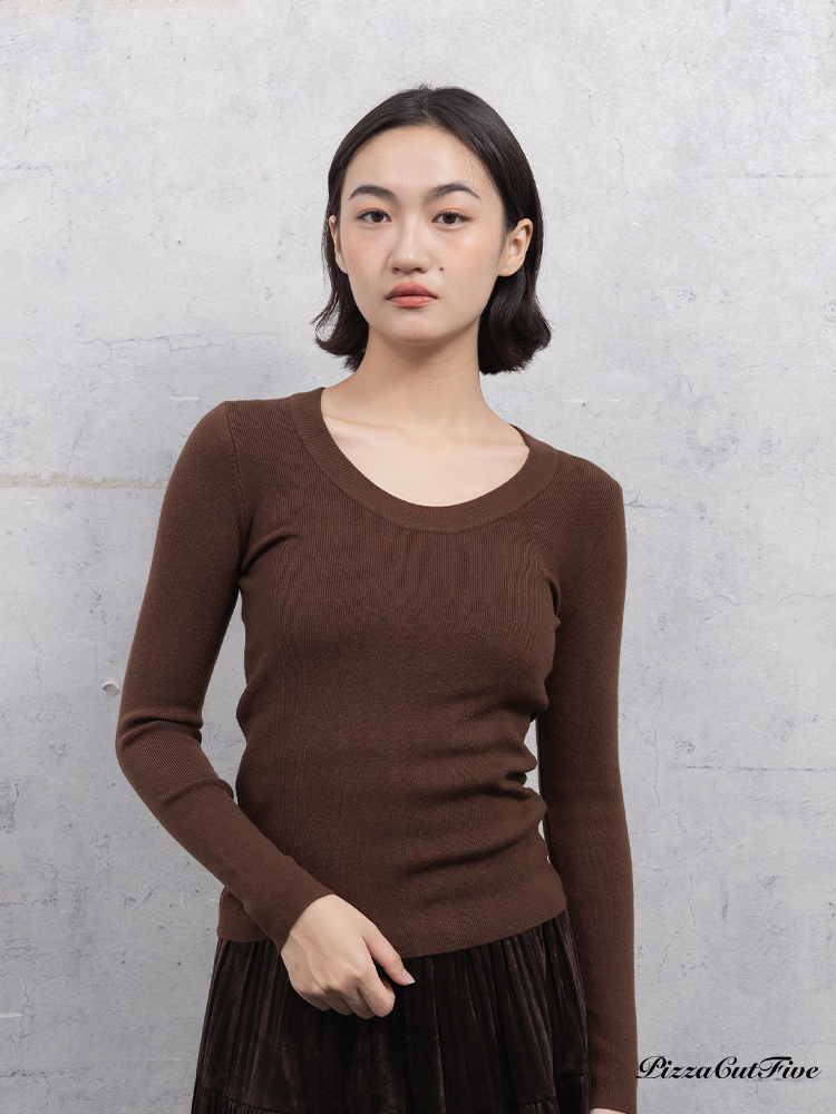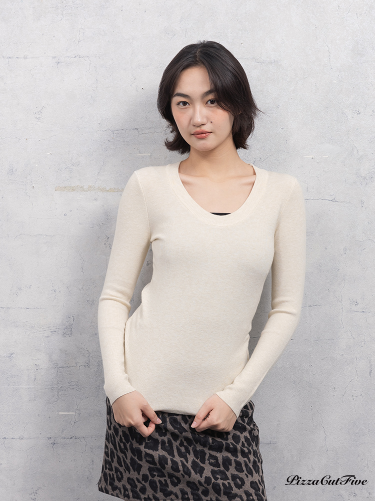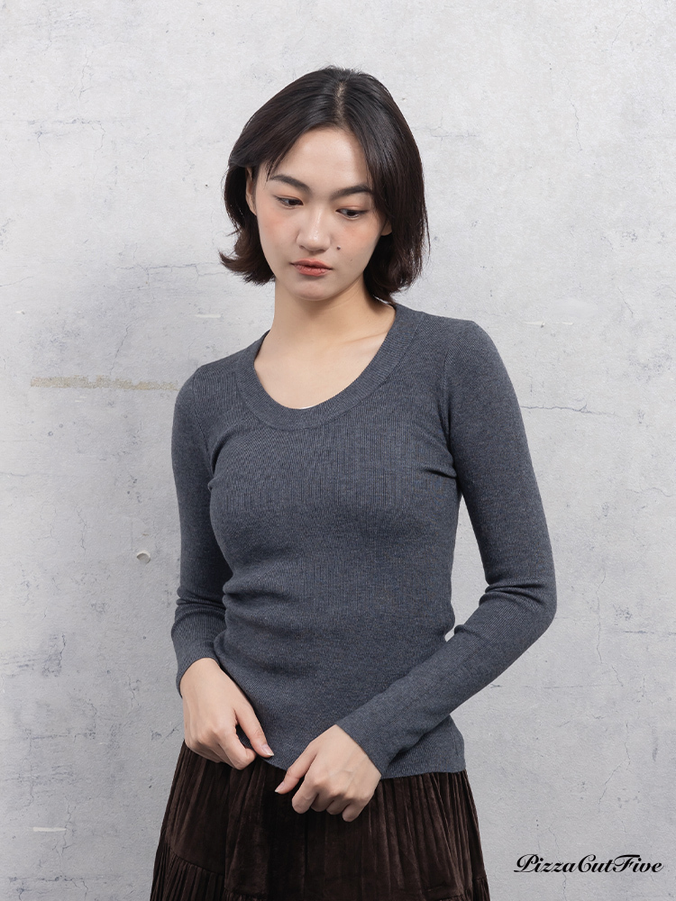 [兩件999]U領素色長袖上衣 PizzaCutFive PCF253403078