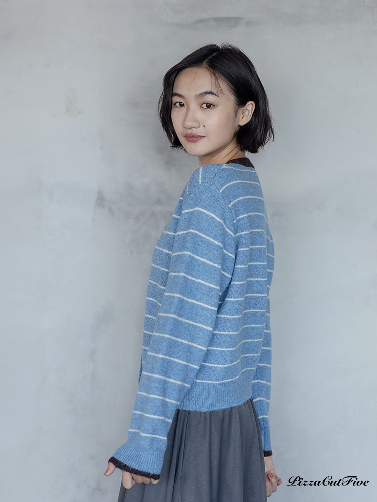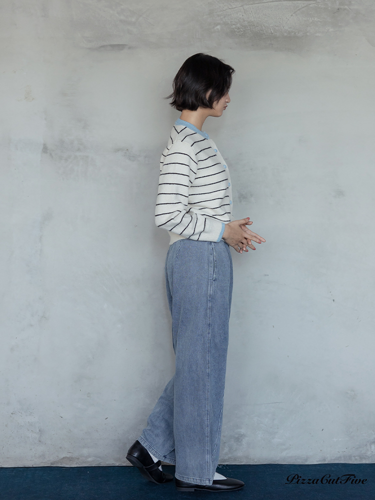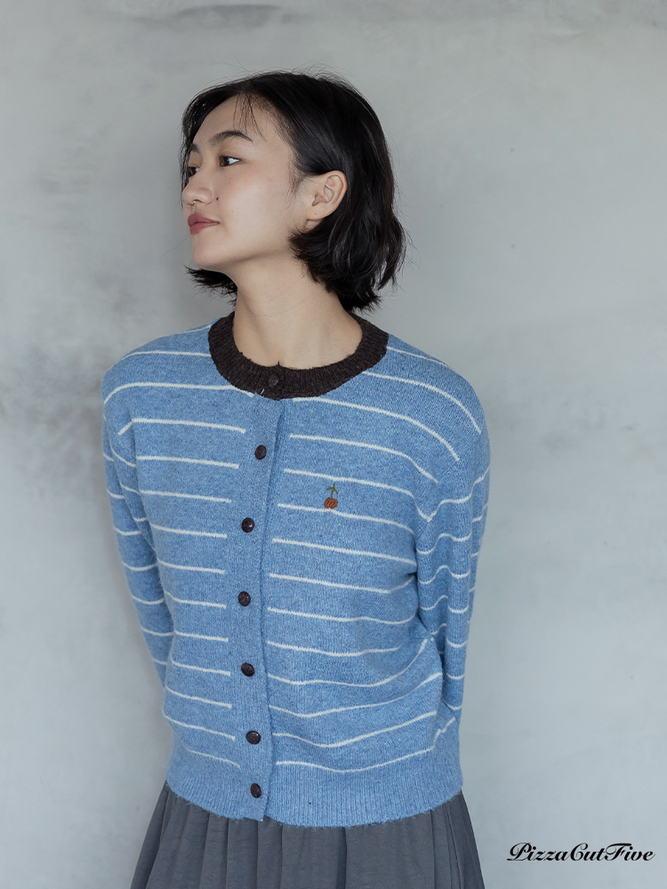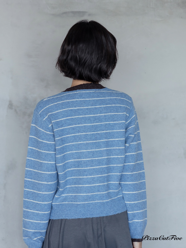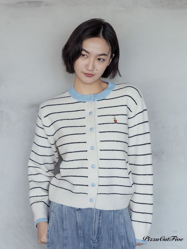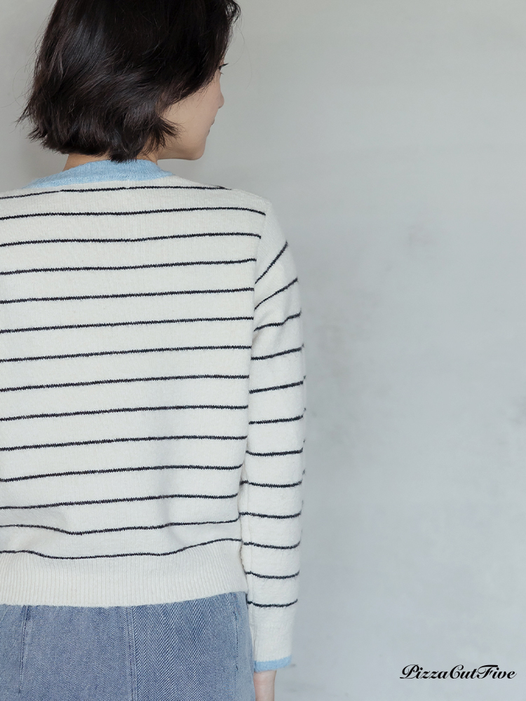。經典條紋好搭配搭配撞色領邊讓色彩更跳出