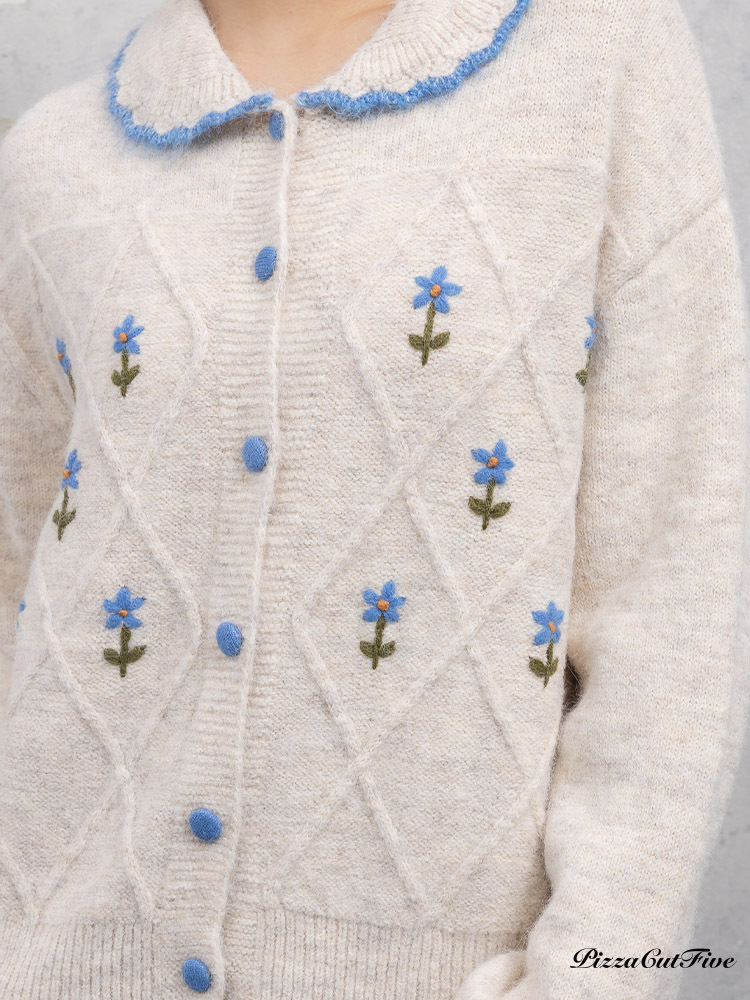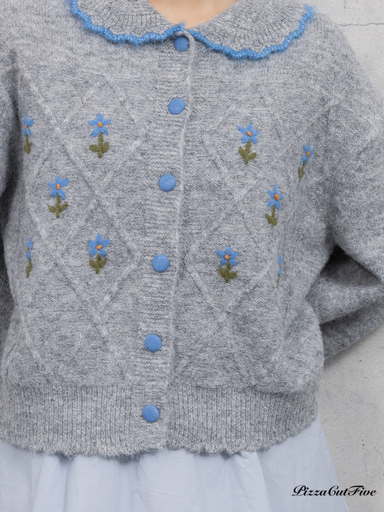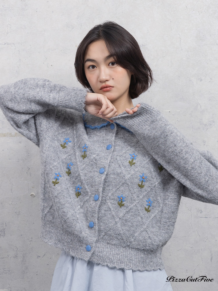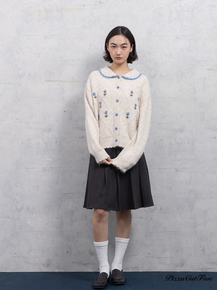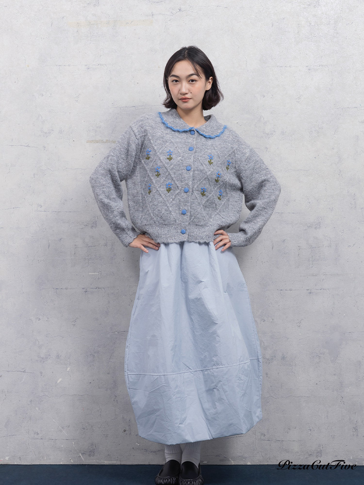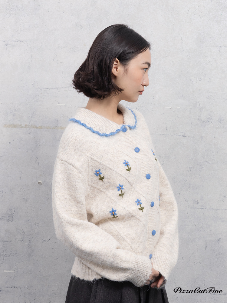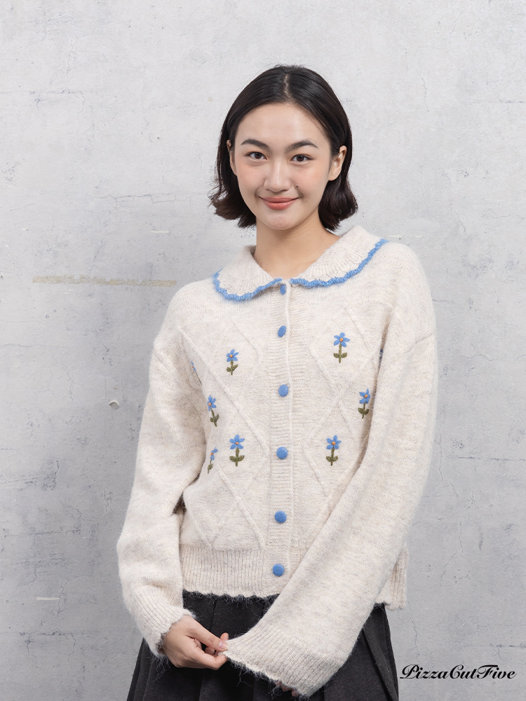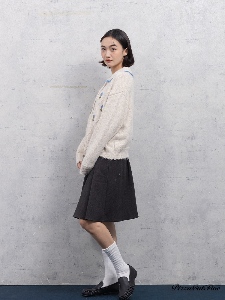 。翻領設計多份學院感,與刺繡小花節結合不失協調感