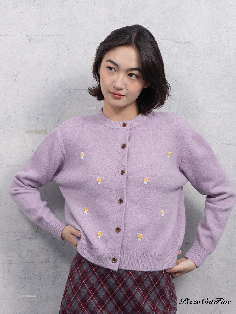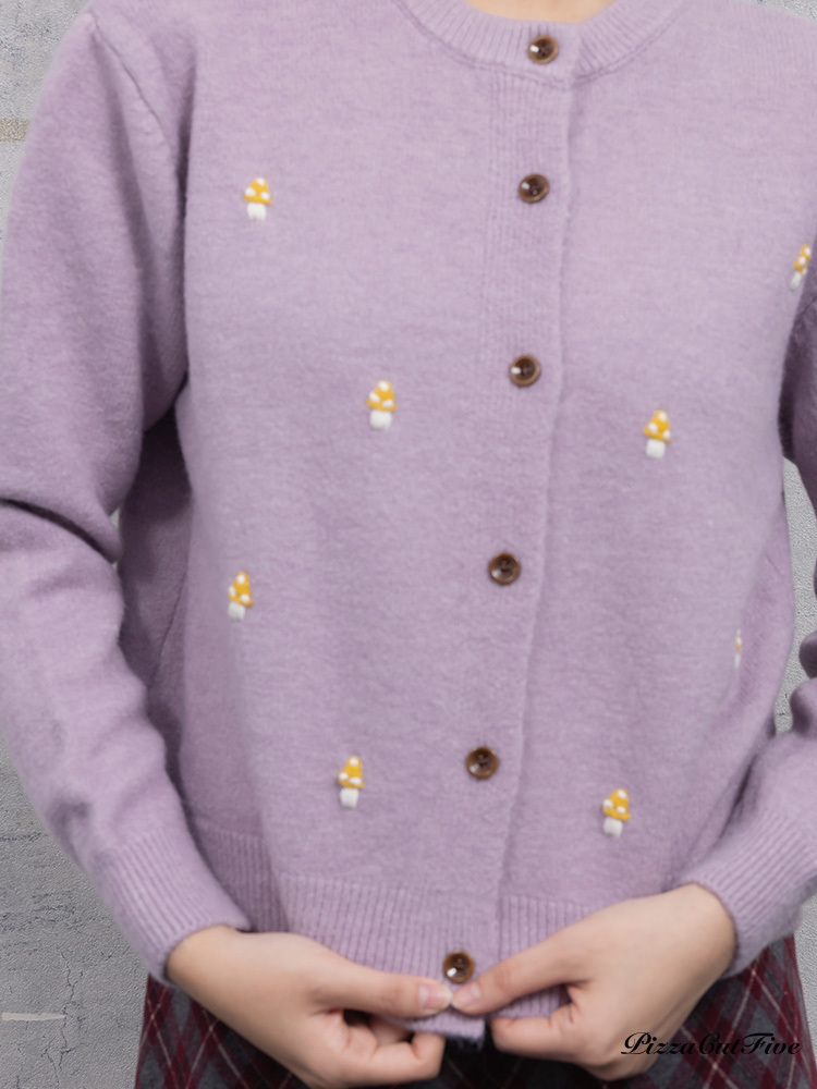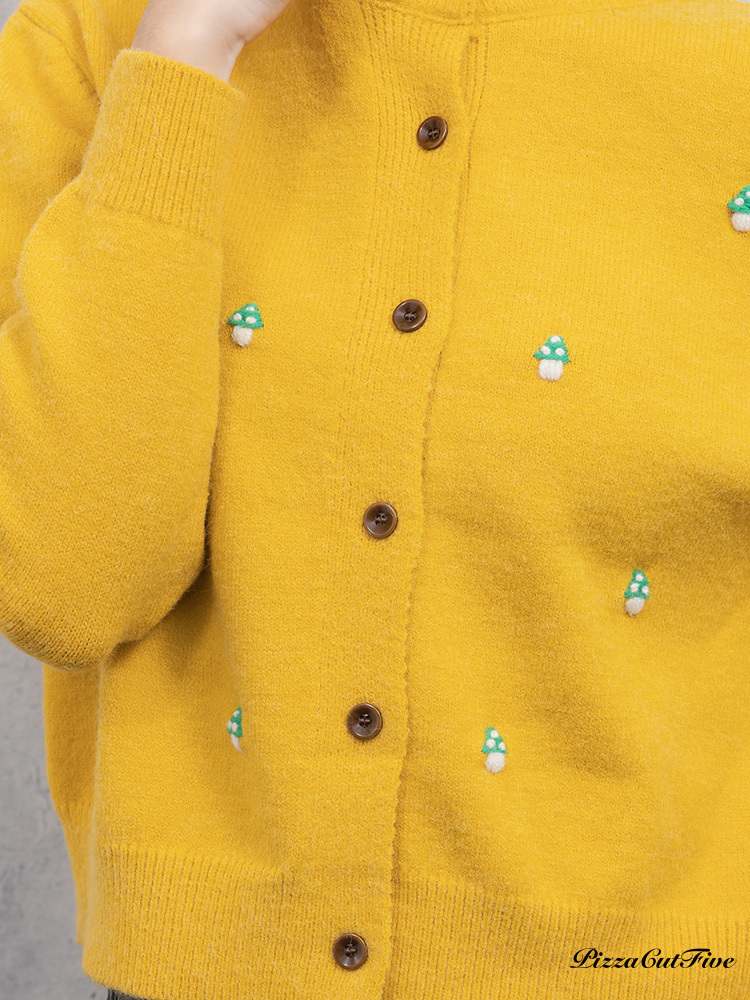 。可愛小蘑菇刺繡增添趣味感