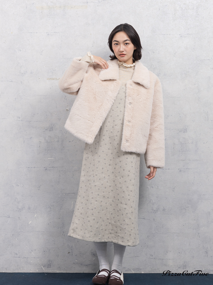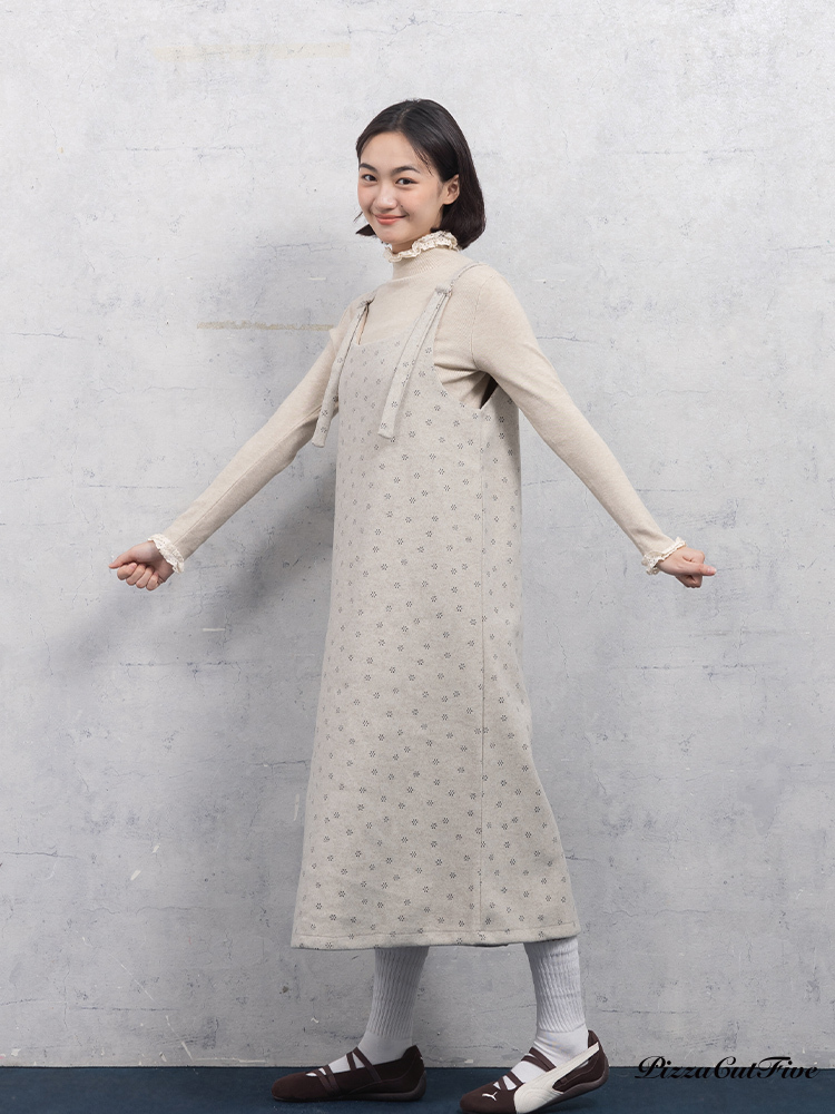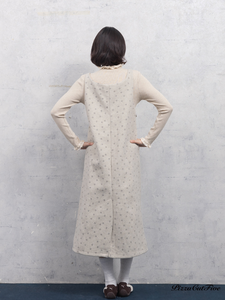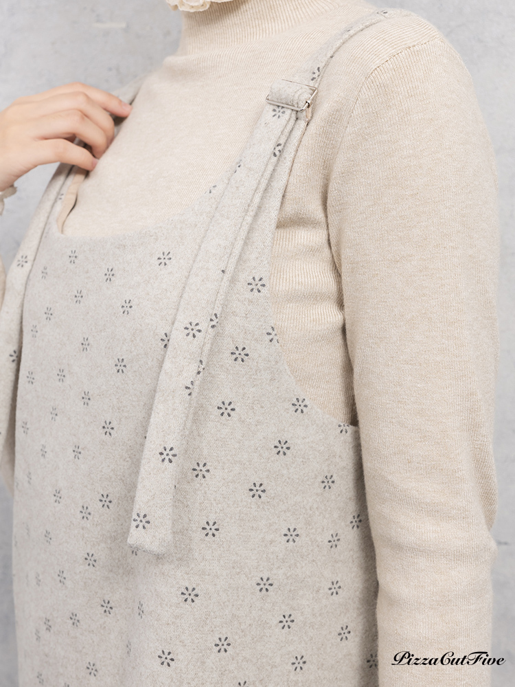 小花毛呢肩帶洋裝 PizzaCutFive PCF253487026