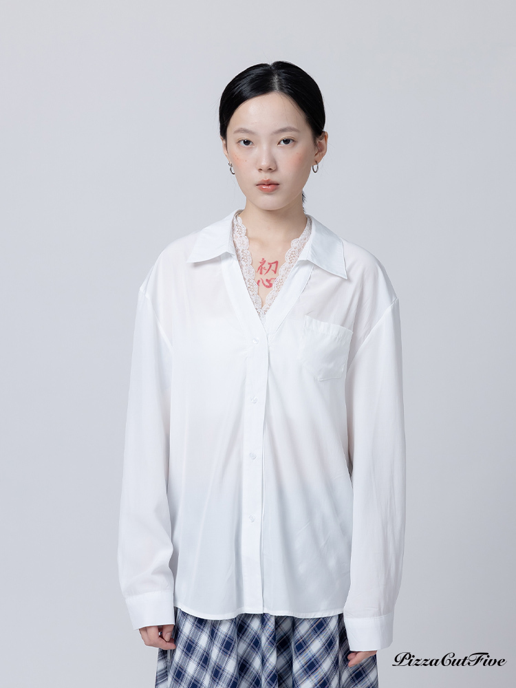 。領口拼接蕾絲及V領領口,多了一份低調的性感