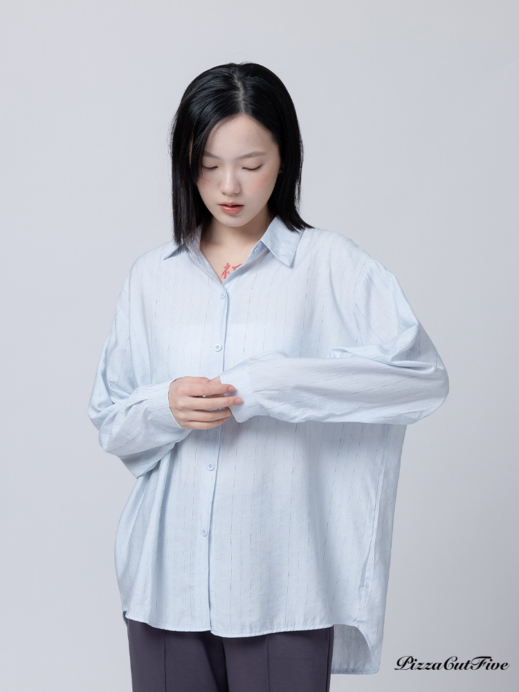 [兩件1580]低調閃亮線條長袖襯衫 PizzaCutFive PCF261401009