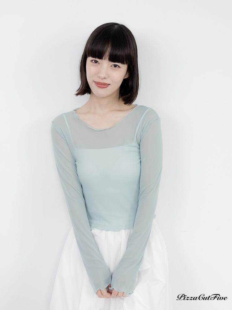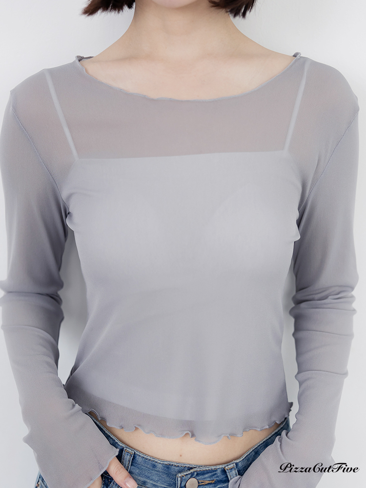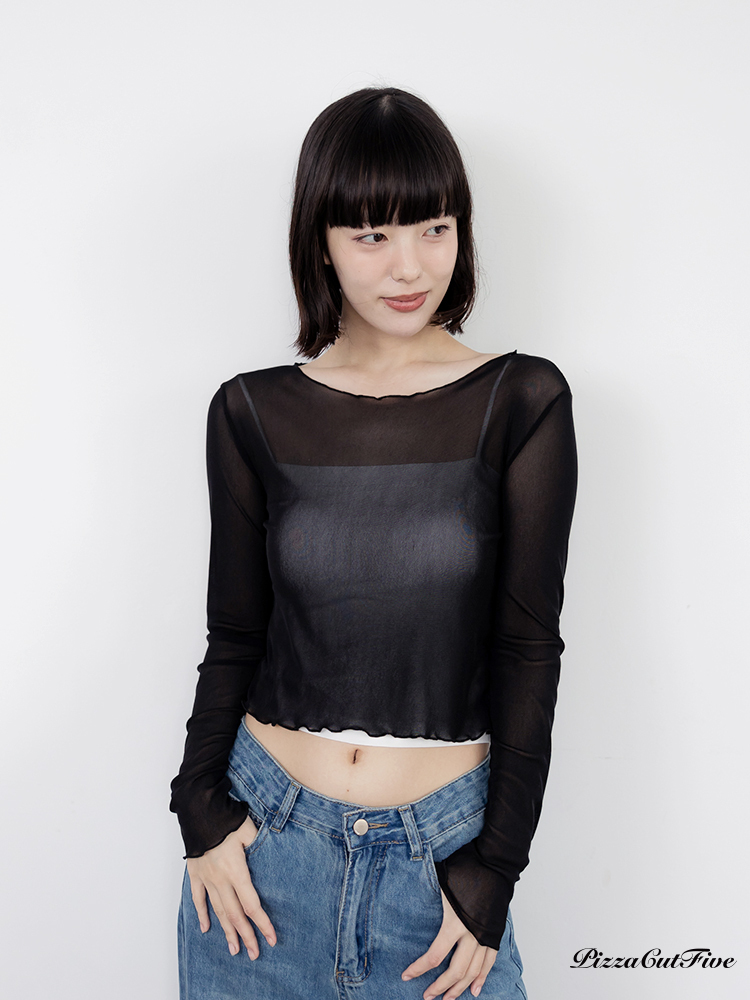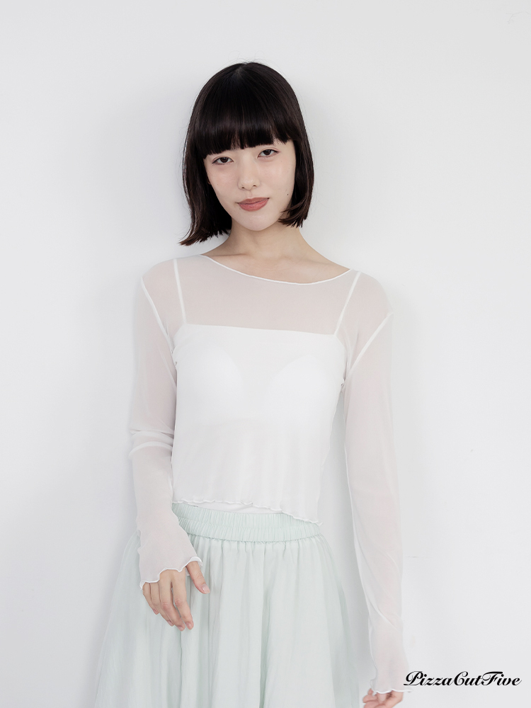 木耳邊網紗透膚長袖上衣 PizzaCutFive PCF261403018