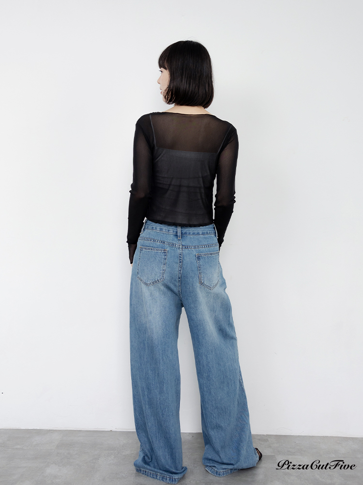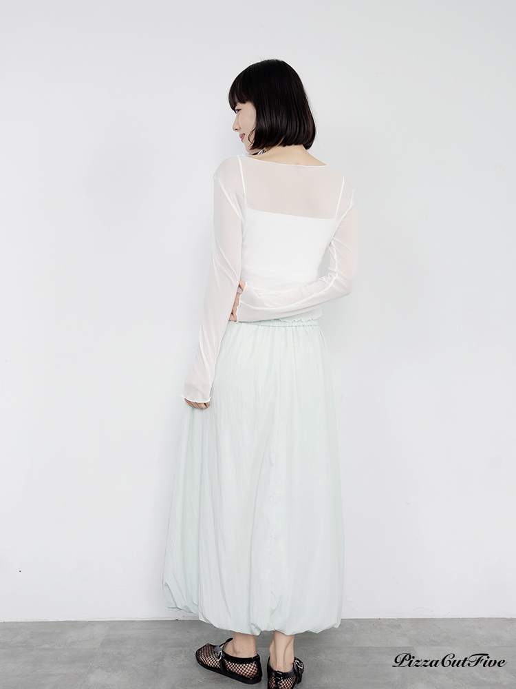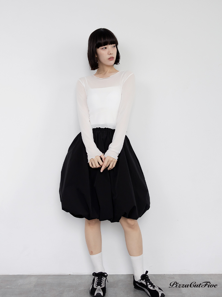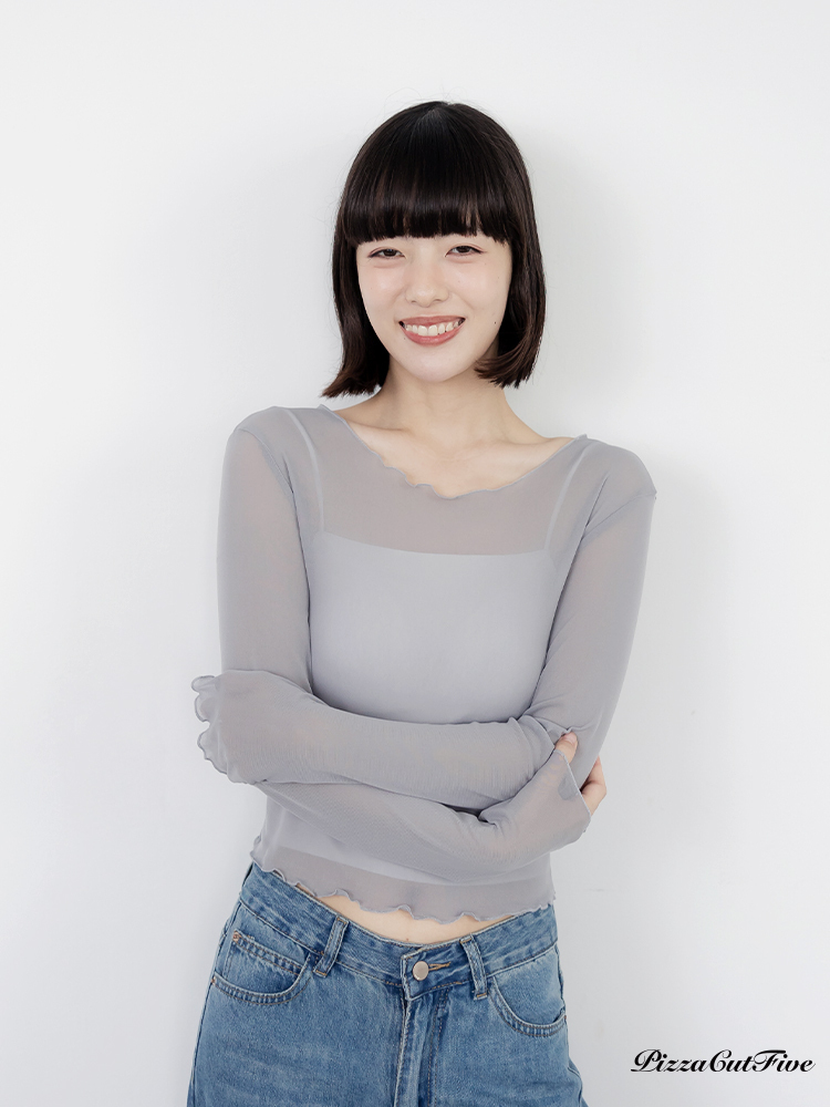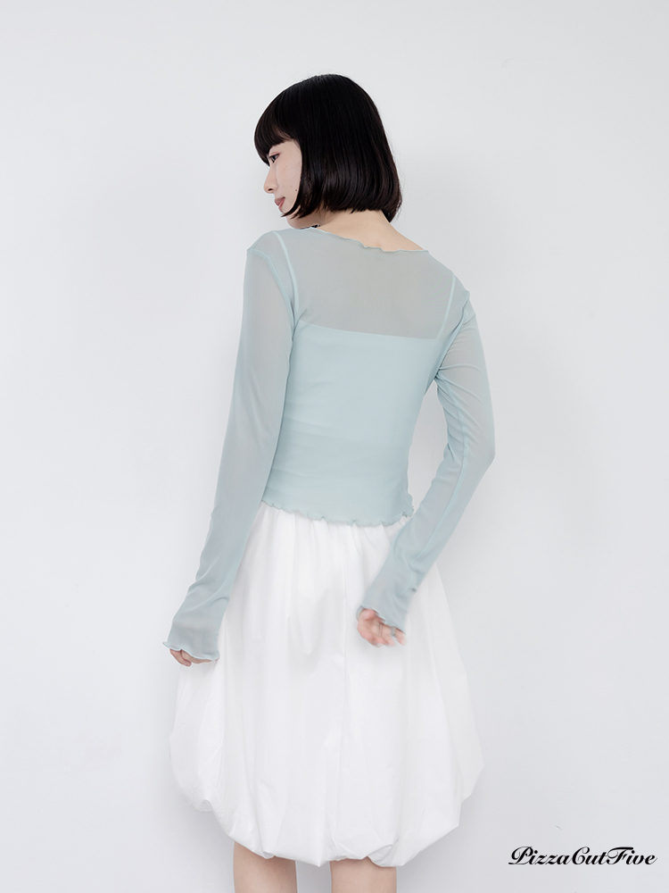 木耳邊網紗透膚長袖上衣 PizzaCutFive PCF261403018