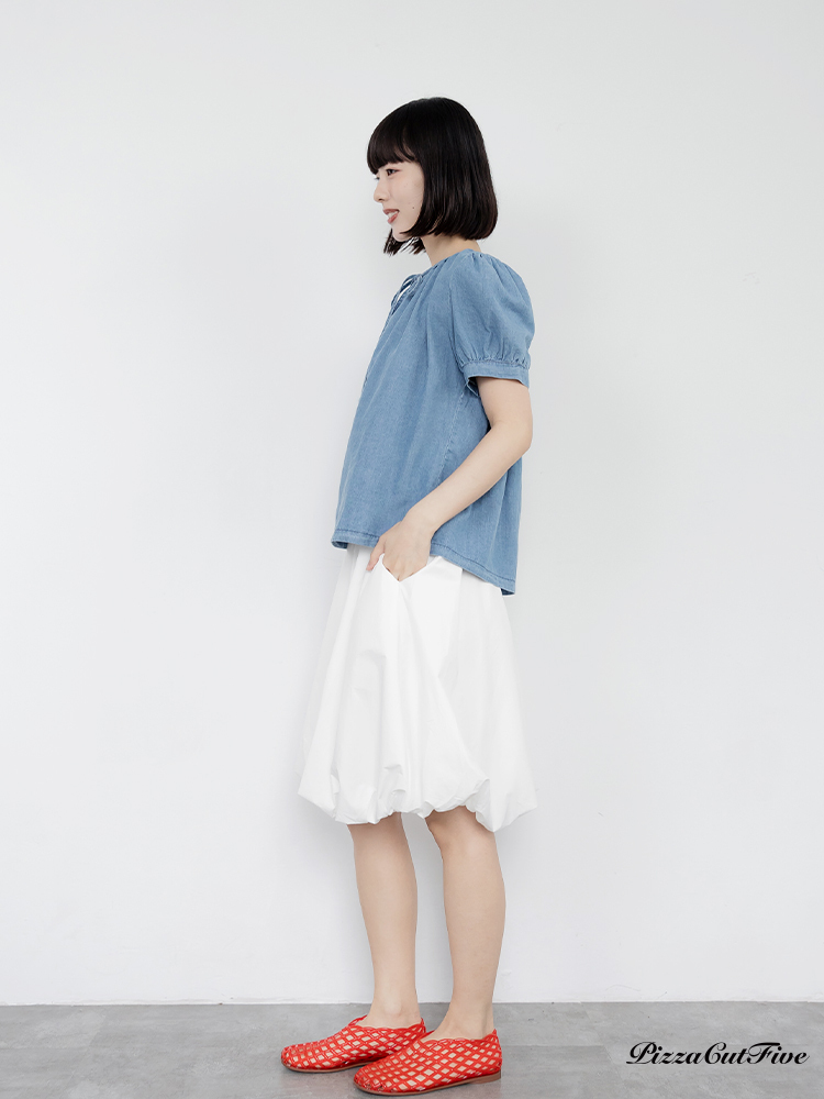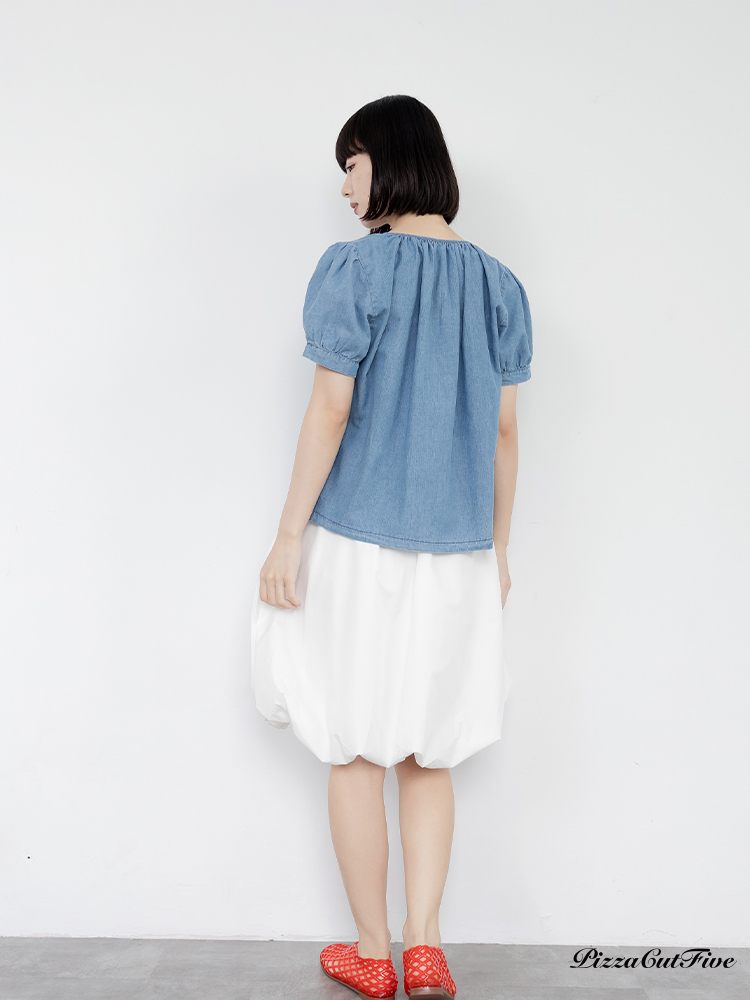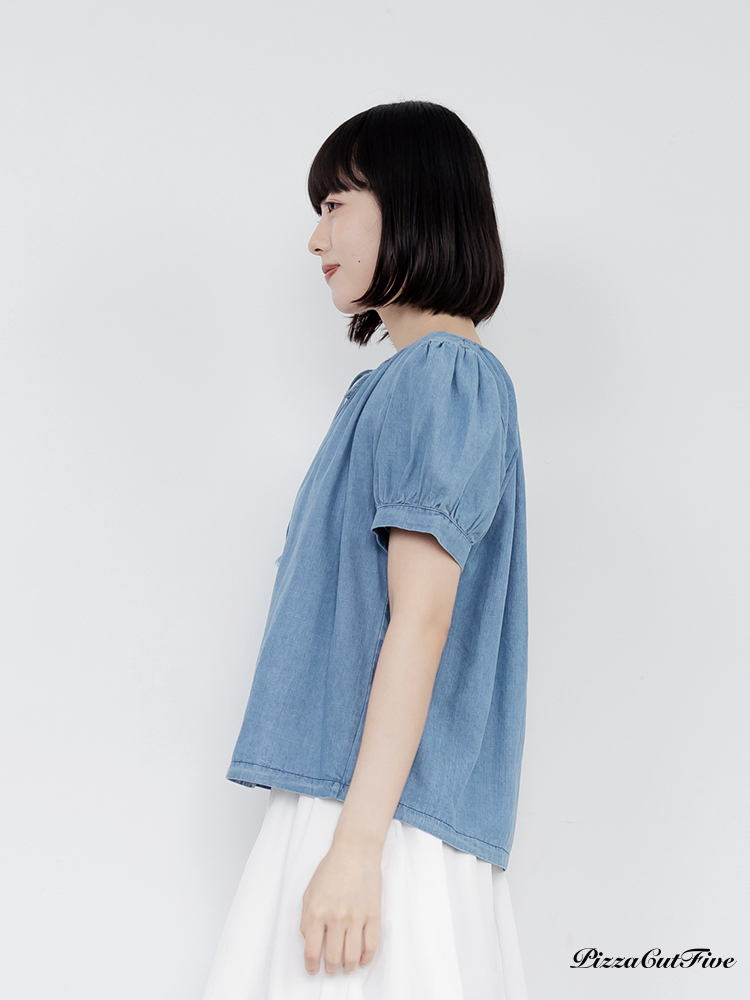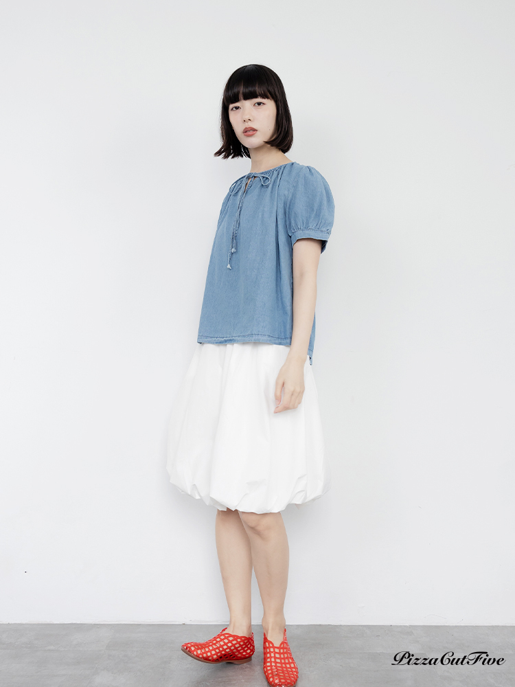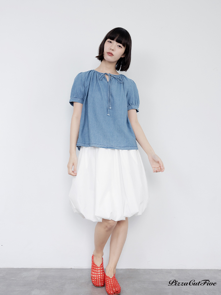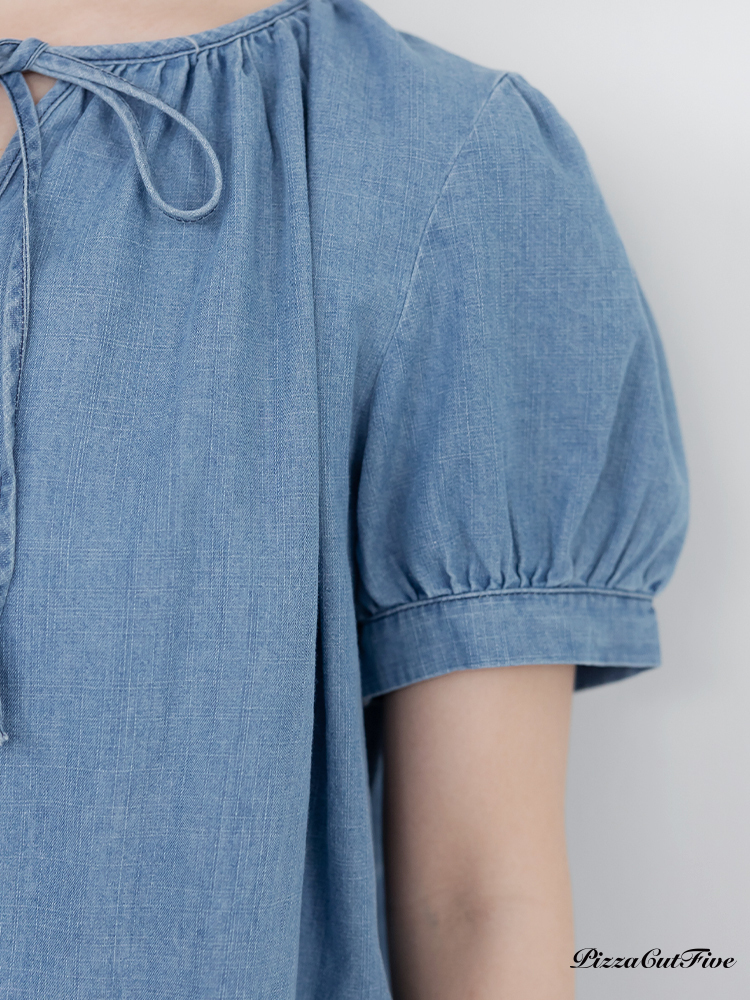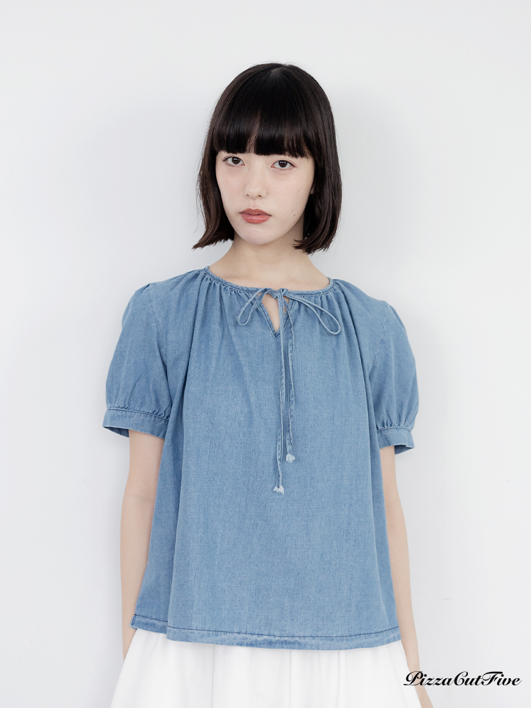 綁帶輕牛仔短袖上衣 PizzaCutFive PCF262404028