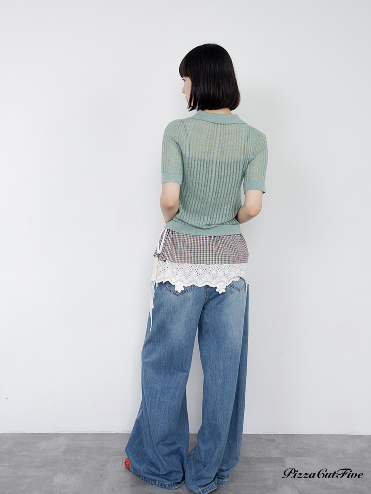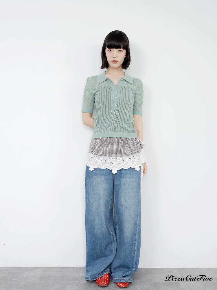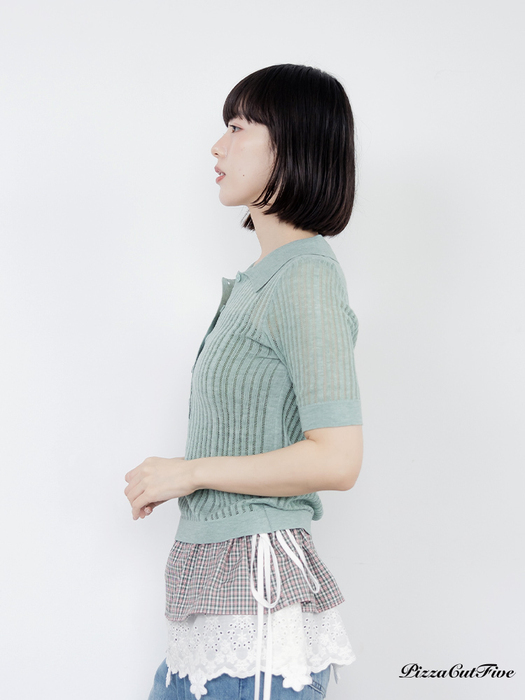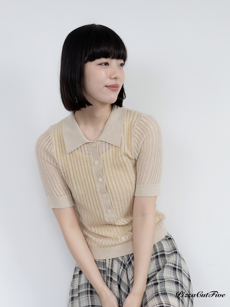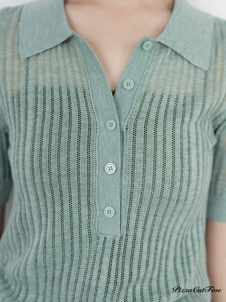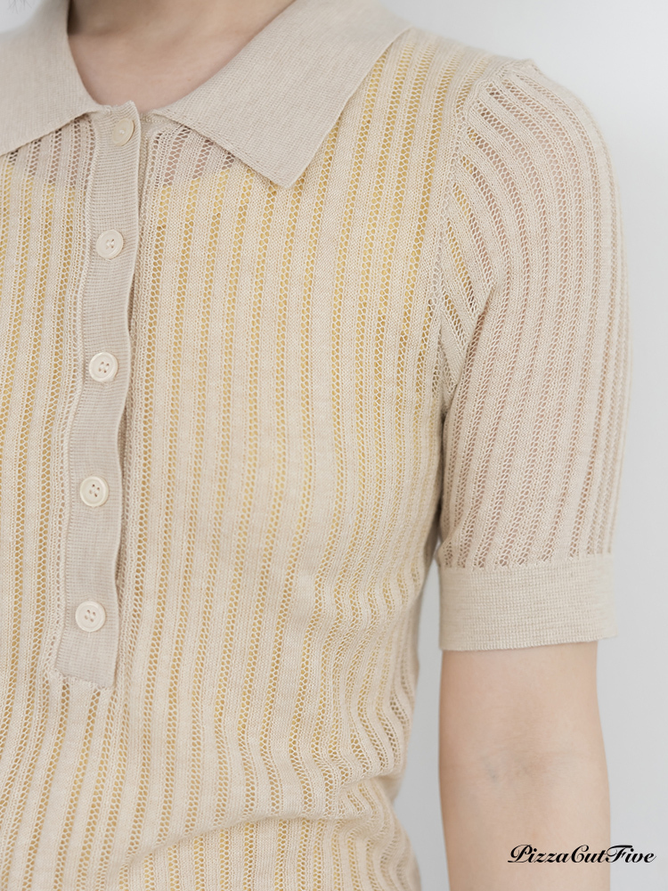 直條壓紋POLO領針織短袖上衣 PizzaCutFive PCF262404038