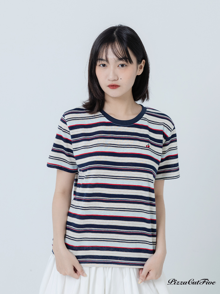 櫻桃條紋短袖T恤 PizzaCutFive PCF262404041