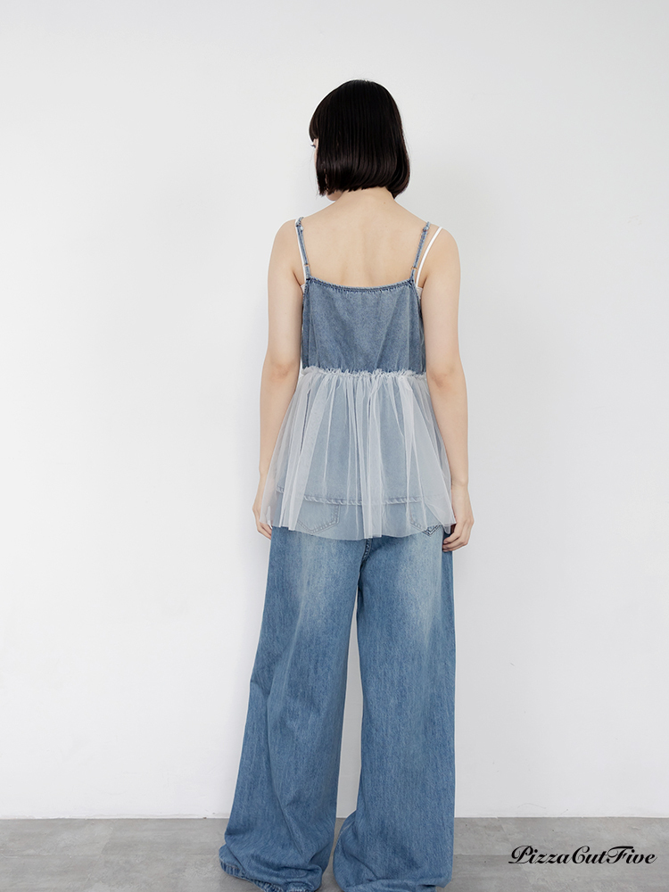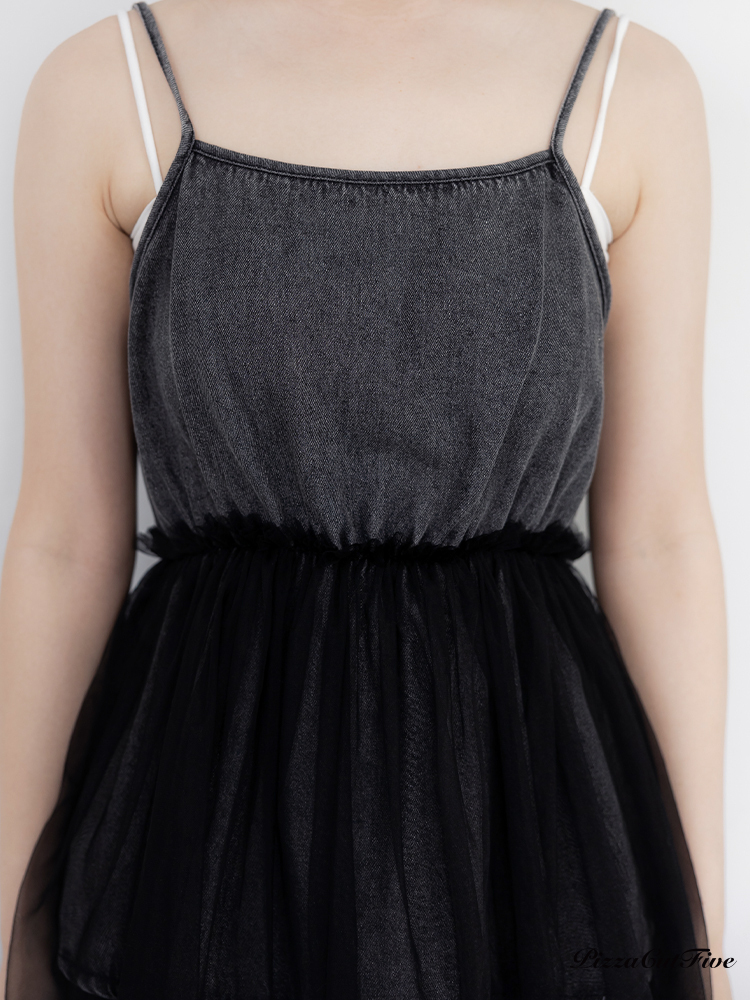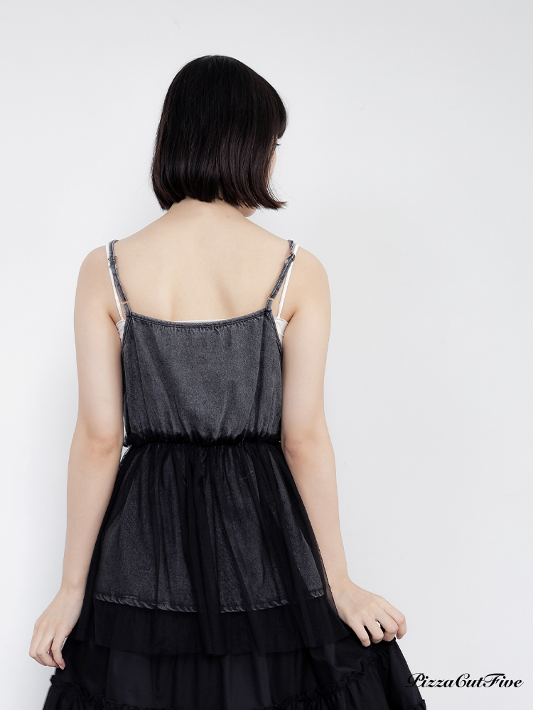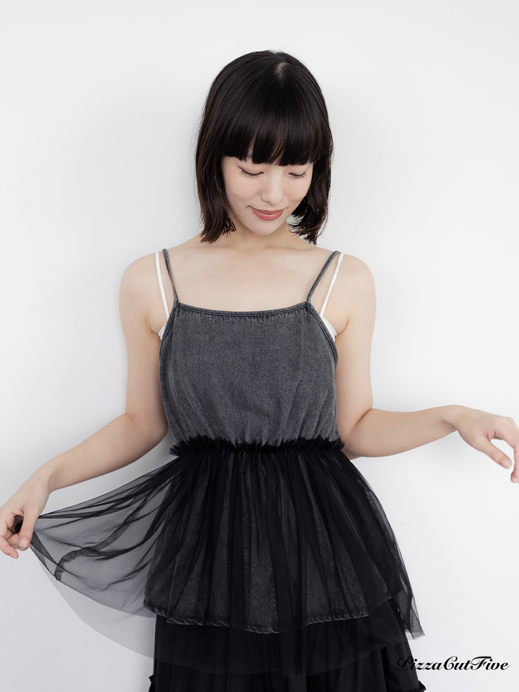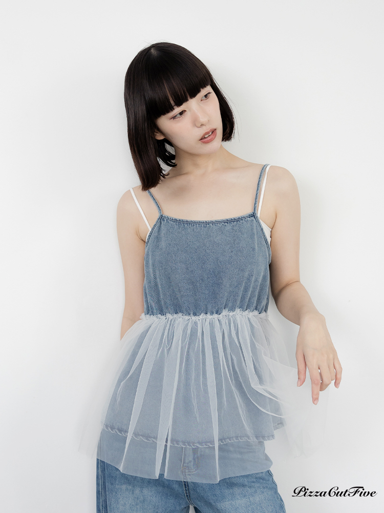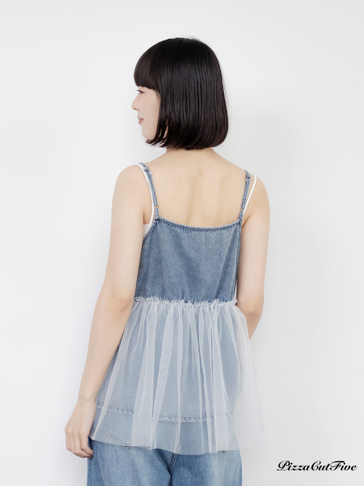雙層異材質拼接肩帶背心 PizzaCutFive PCF262411015