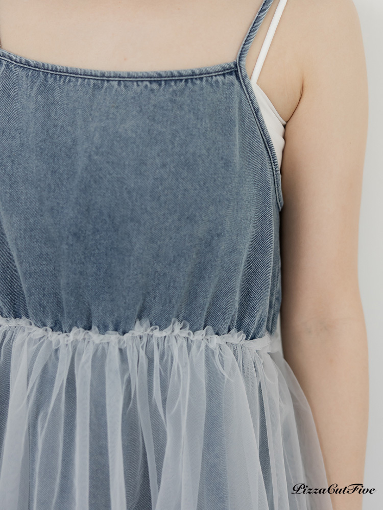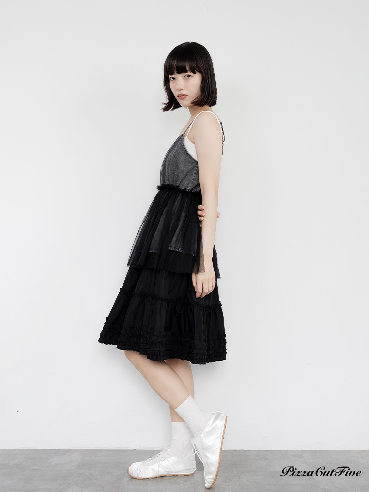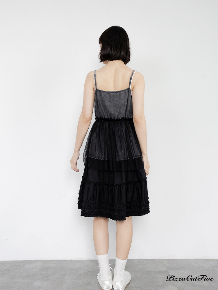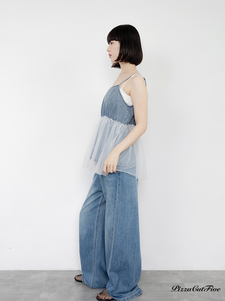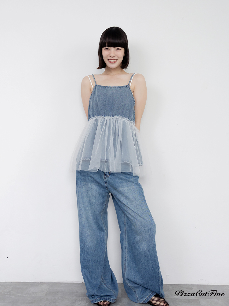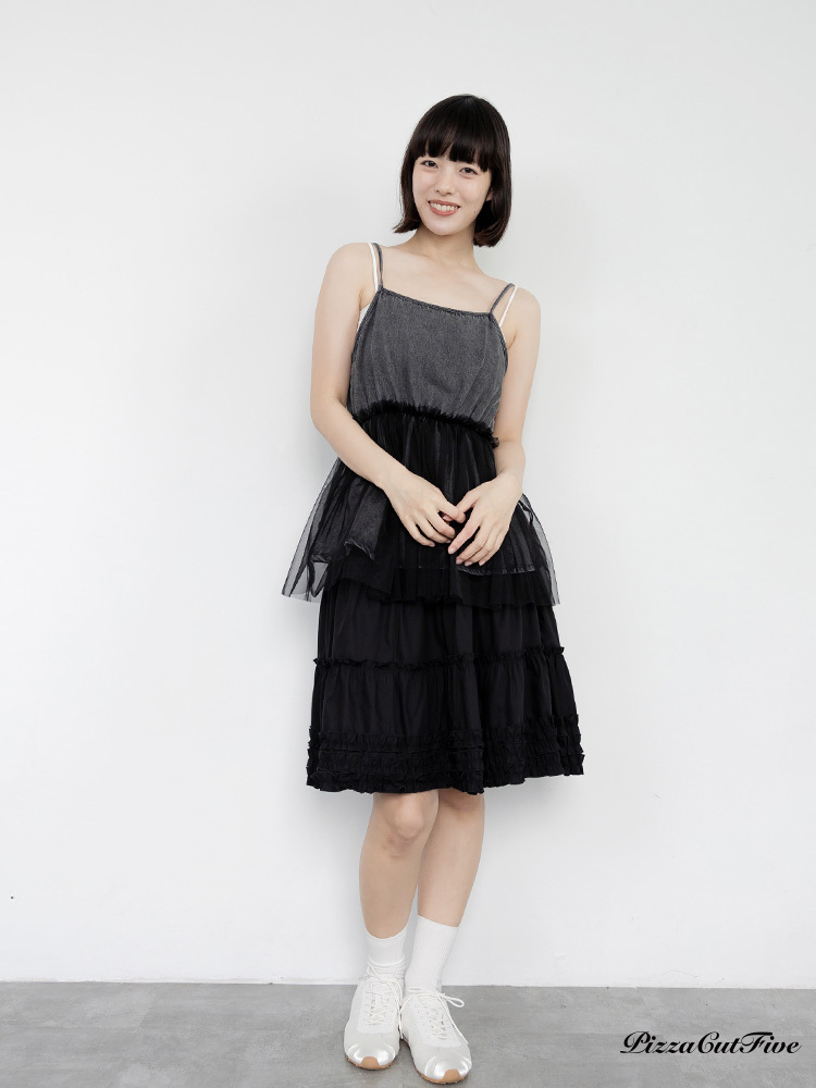 雙層異材質拼接肩帶背心 PizzaCutFive PCF262411015