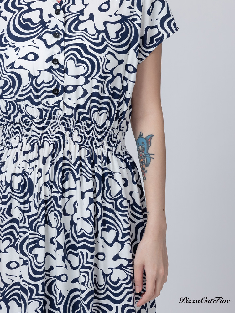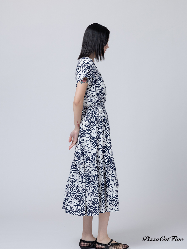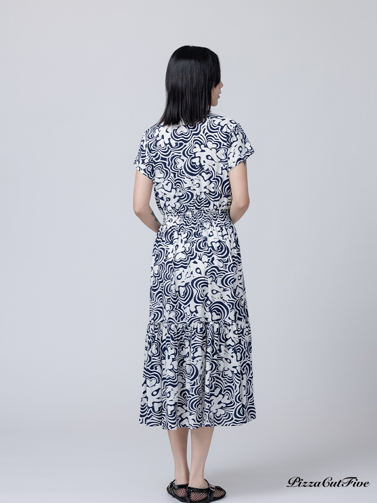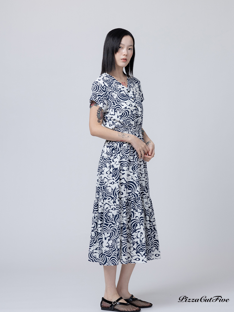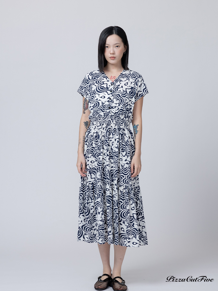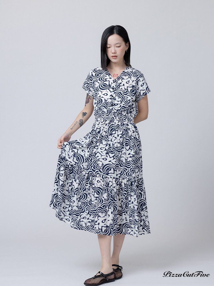 [兩件1580|涼感洋裝]波紋花朵短袖縮腰洋裝 PizzaCutFive PCF262485010