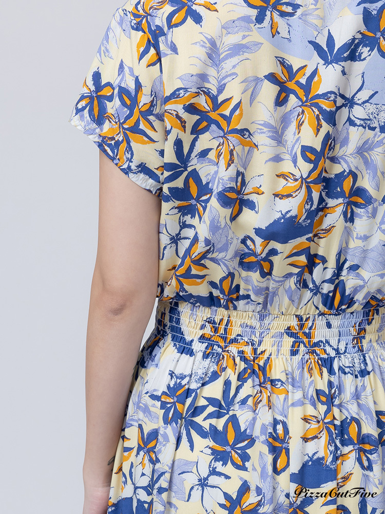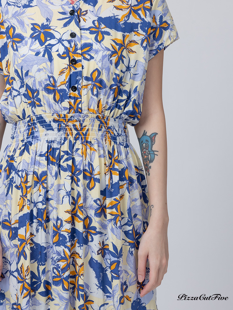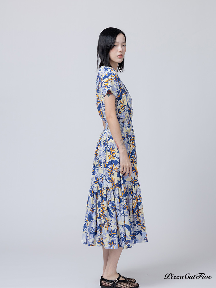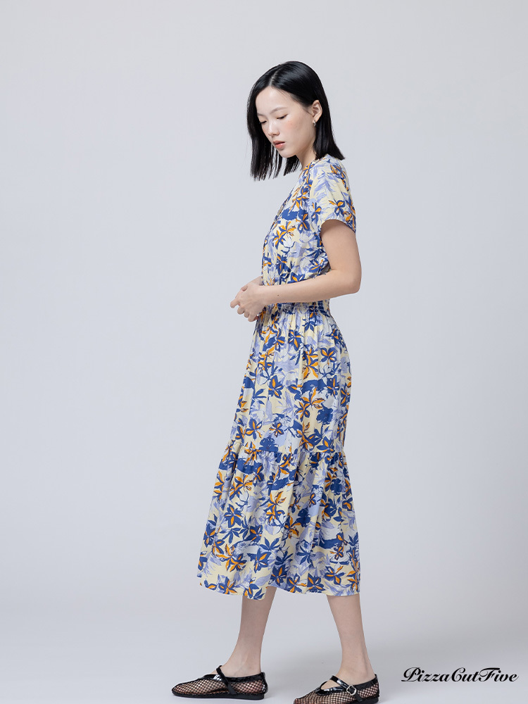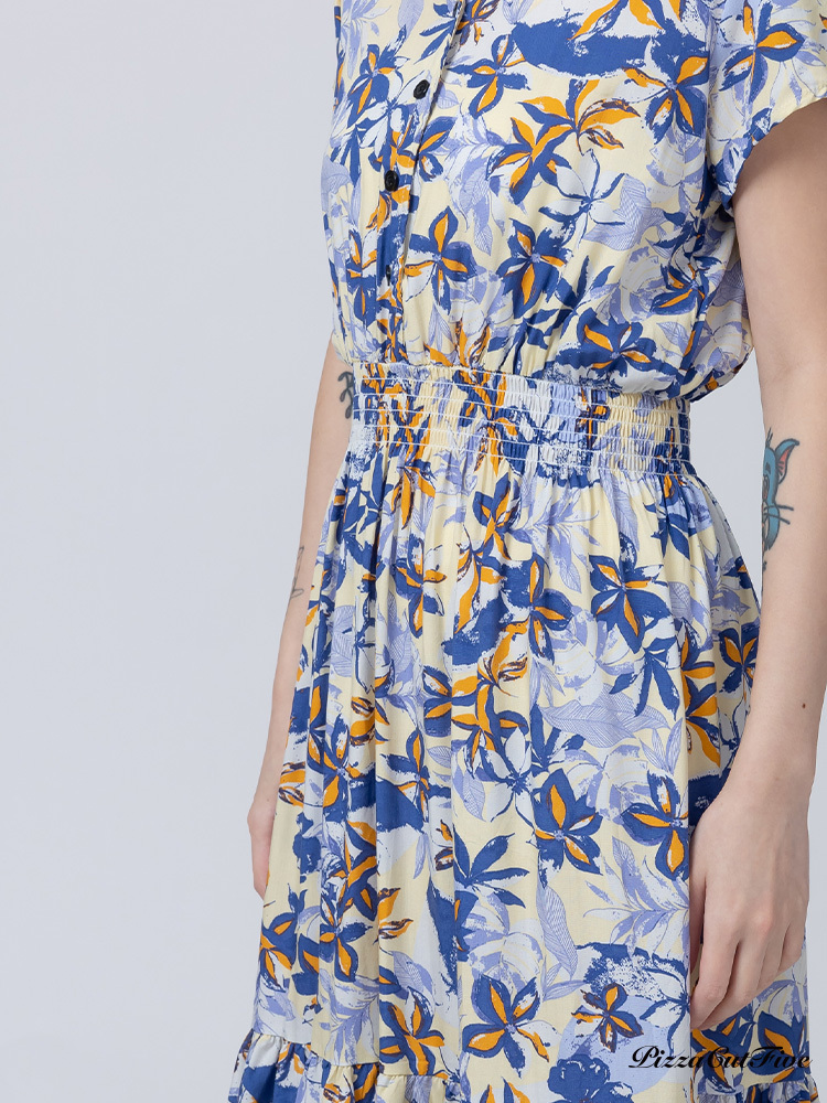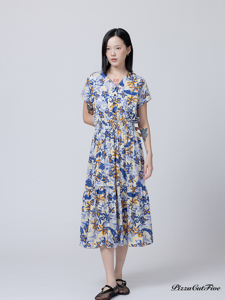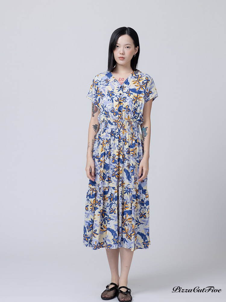 [兩件1580|涼感洋裝]塗鴉花朵短袖縮腰洋裝 PizzaCutFive PCF262485013