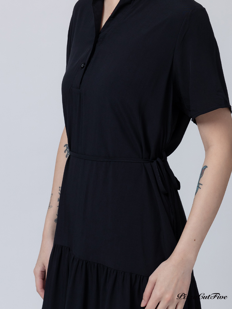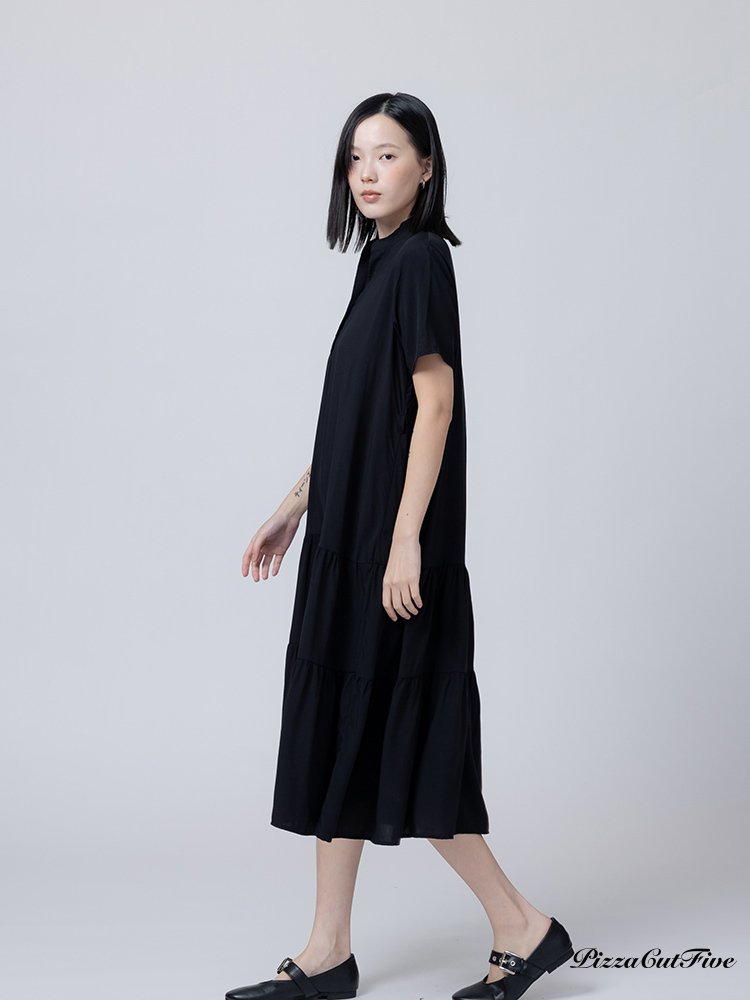 [兩件1580|涼感洋裝]簡約素色立領短袖連身洋裝 PizzaCutFive PCF262485028