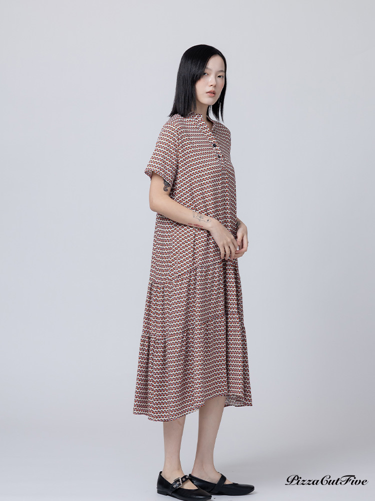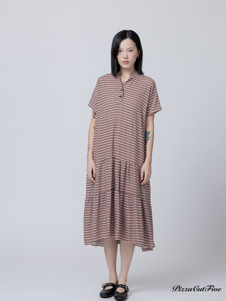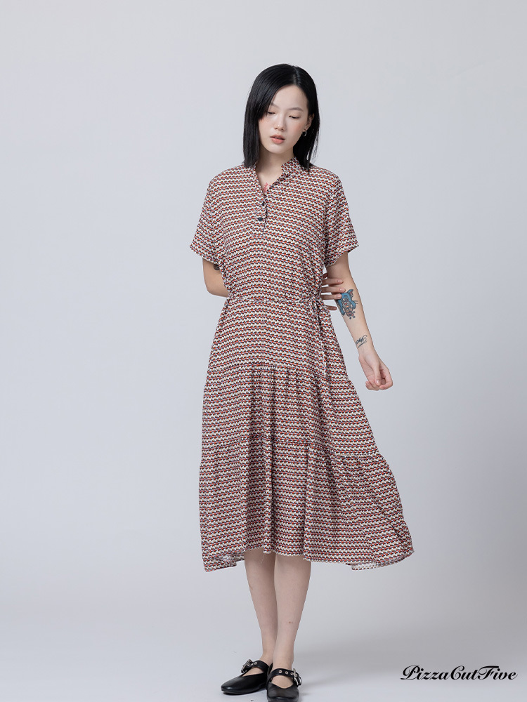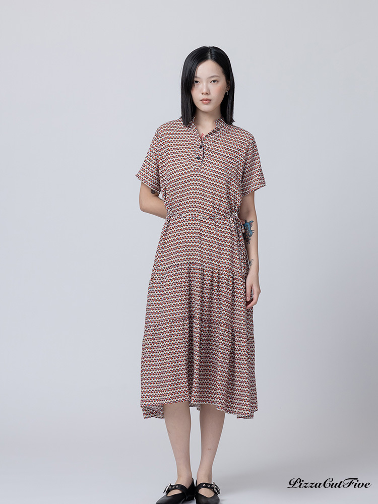 [兩件1580|涼感洋裝]幾何交錯立領短袖連身洋裝 PizzaCutFive PCF262485031