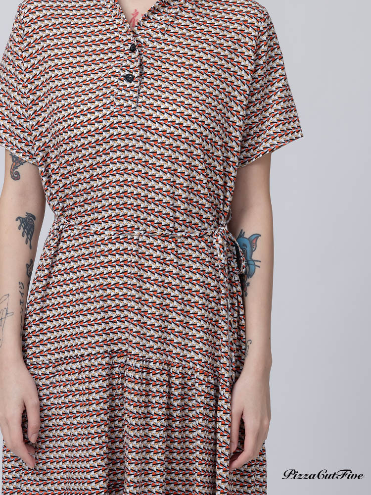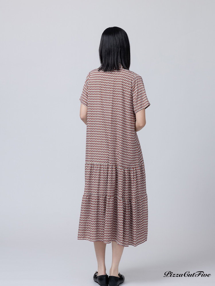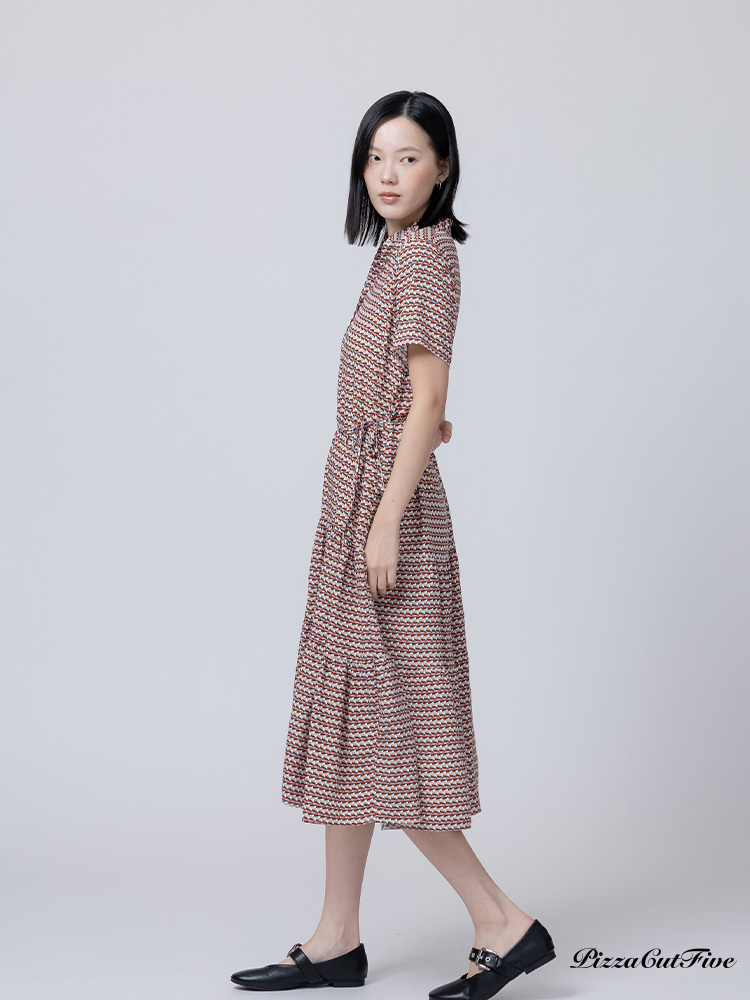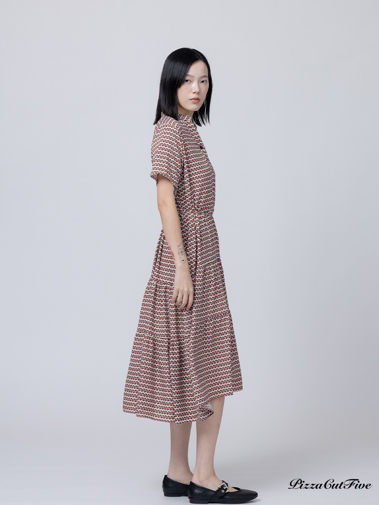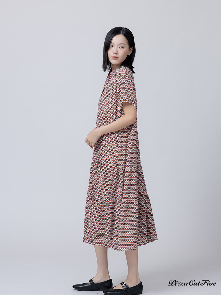 [兩件1580|涼感洋裝]幾何交錯立領短袖連身洋裝 PizzaCutFive PCF262485031