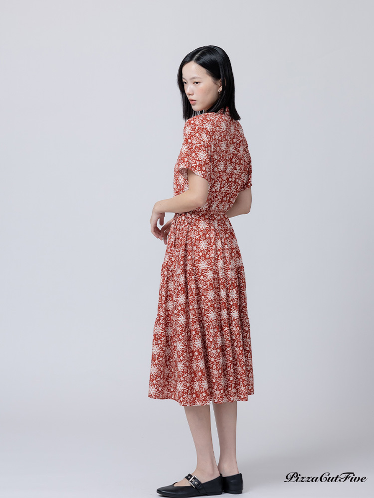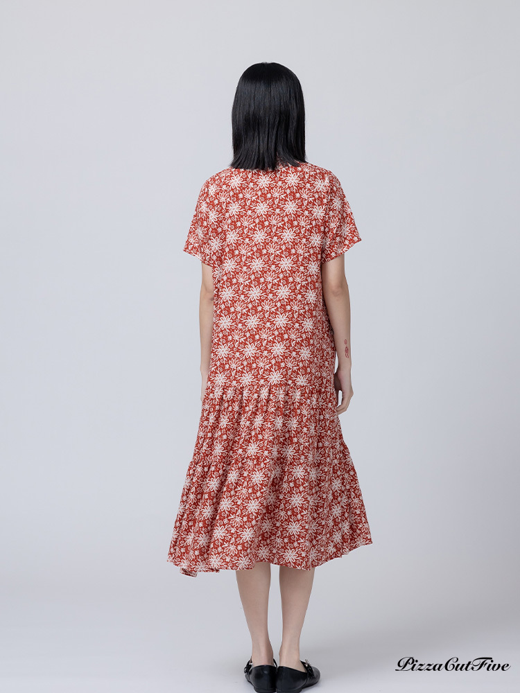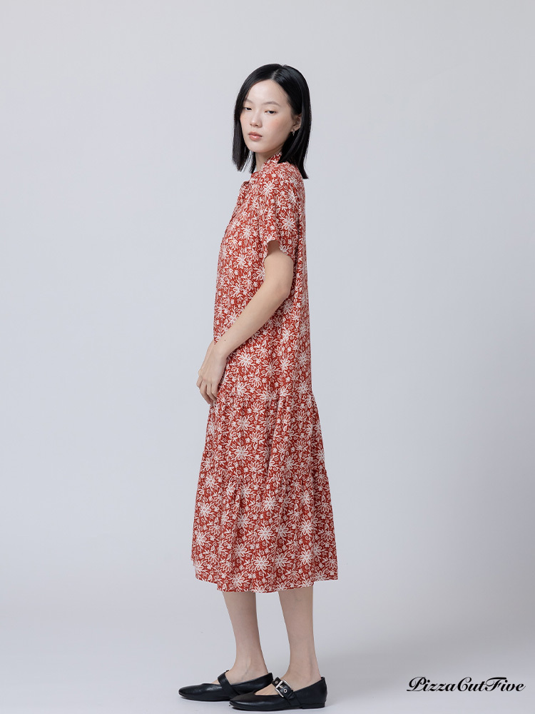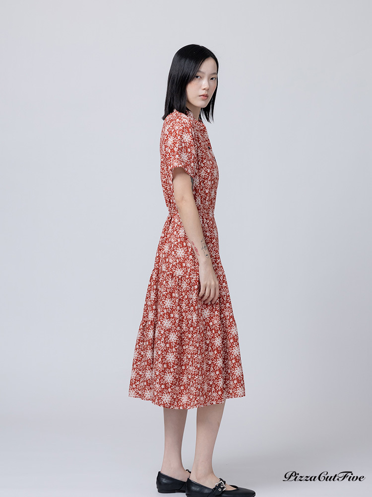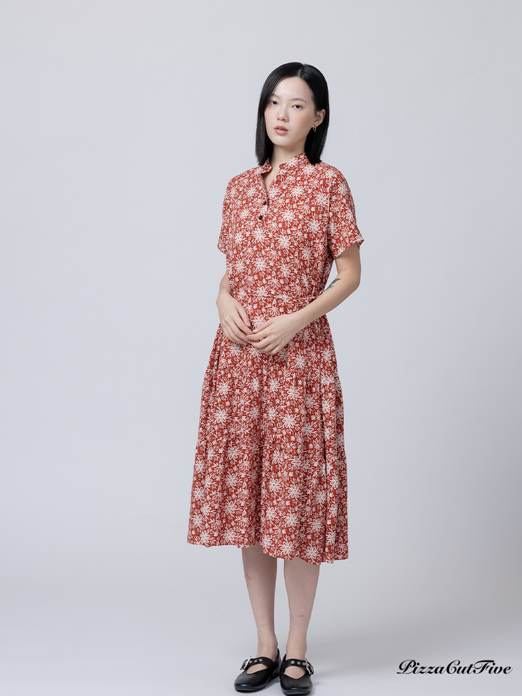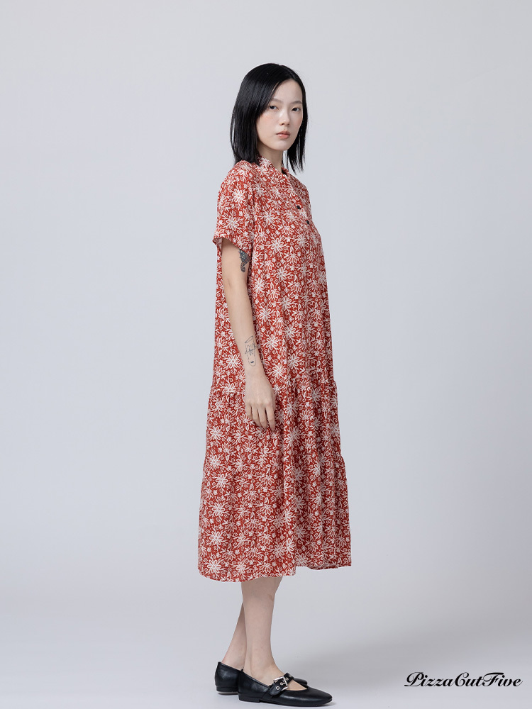 [兩件1580|涼感洋裝]煙火花朵立領短袖連身洋裝 PizzaCutFive PCF262485032