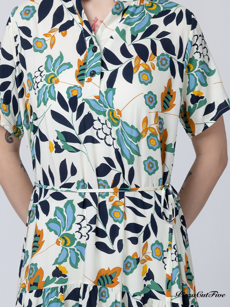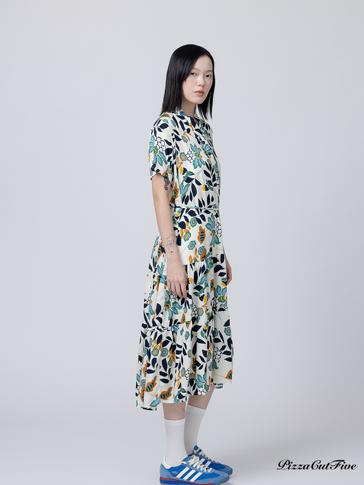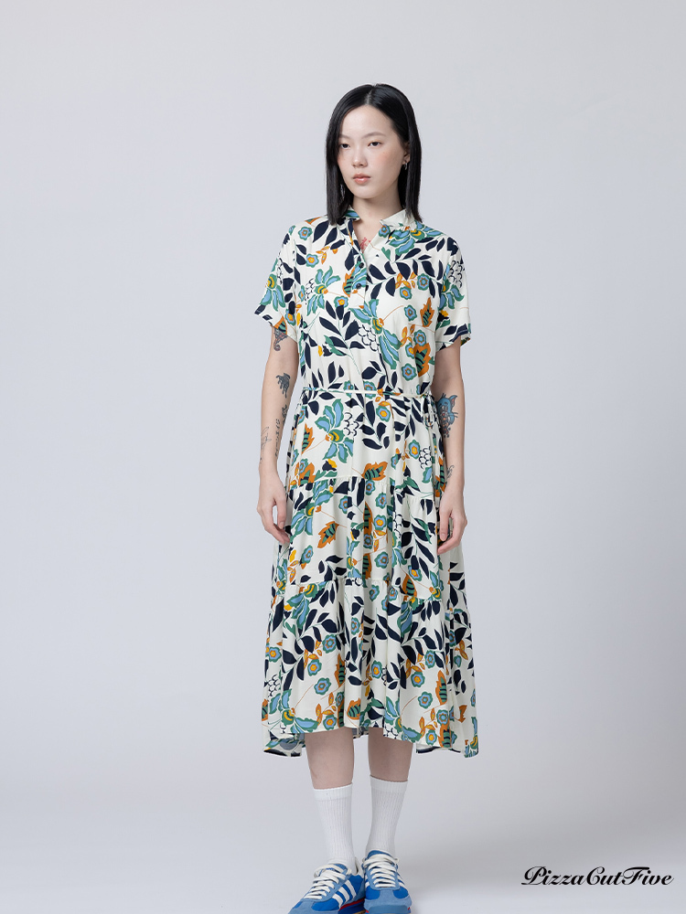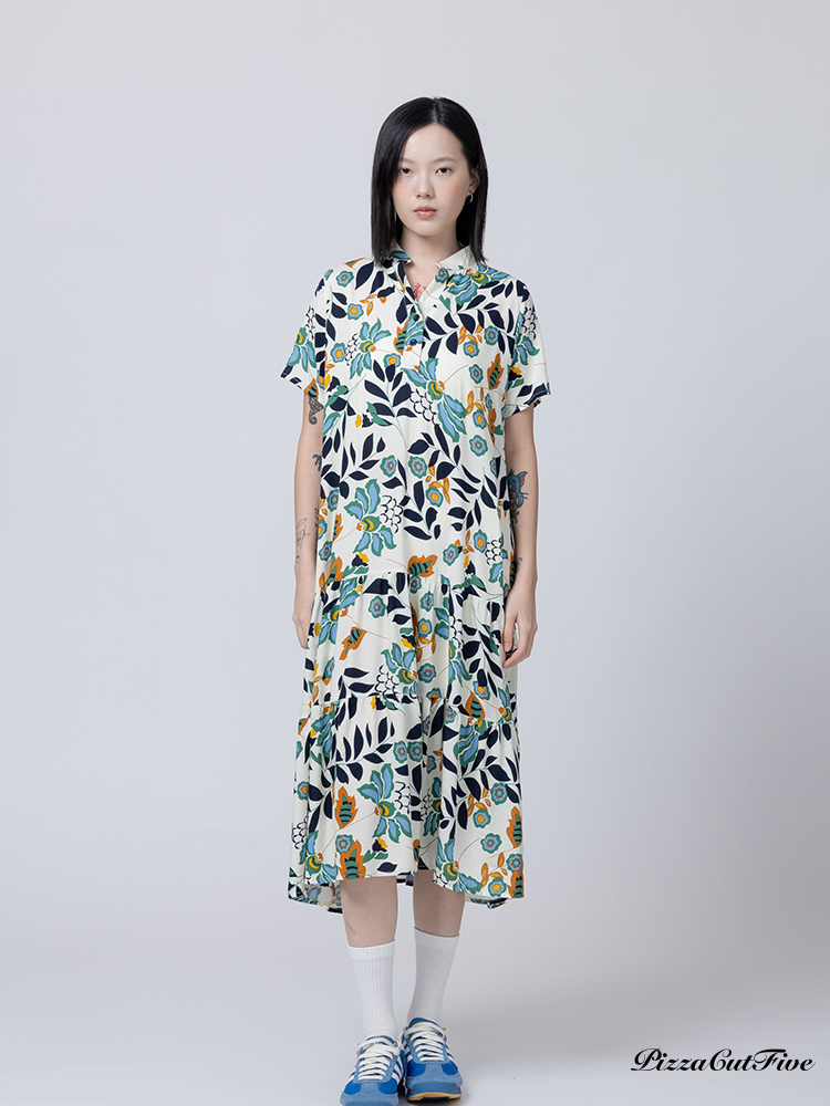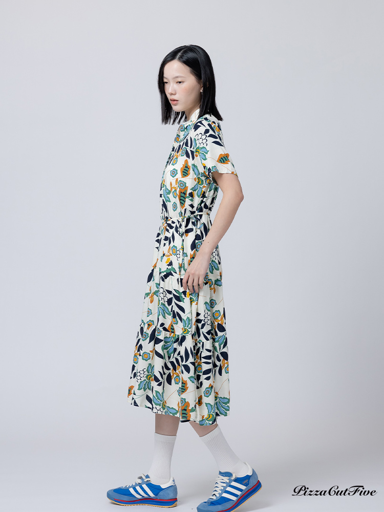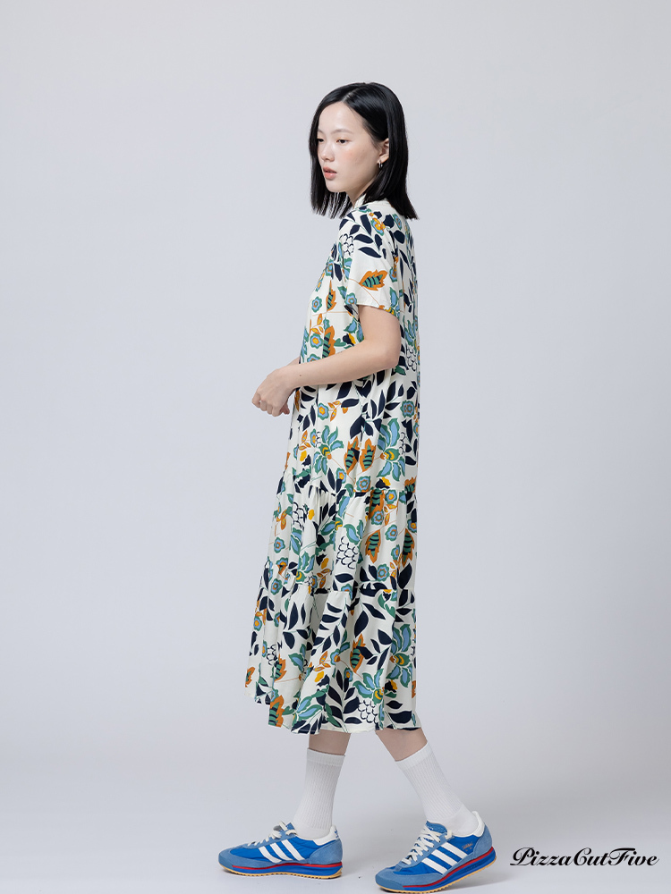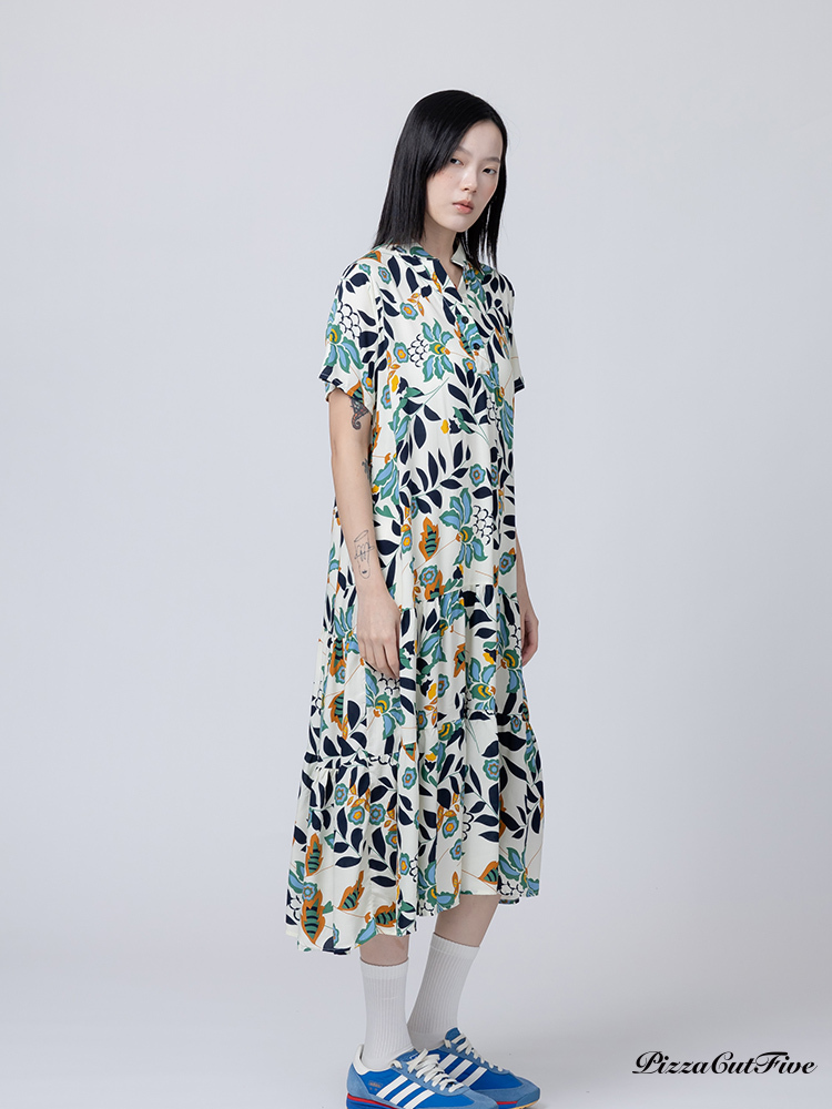 [兩件1580|涼感洋裝]葉子立領短袖連身洋裝 PizzaCutFive PCF262485034