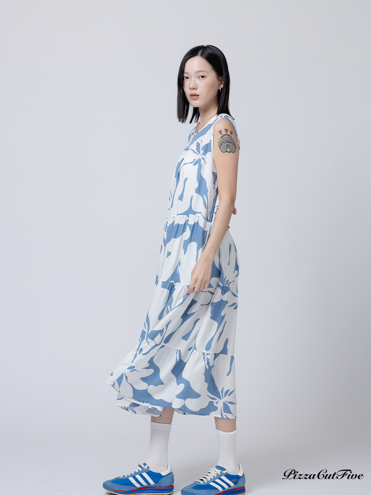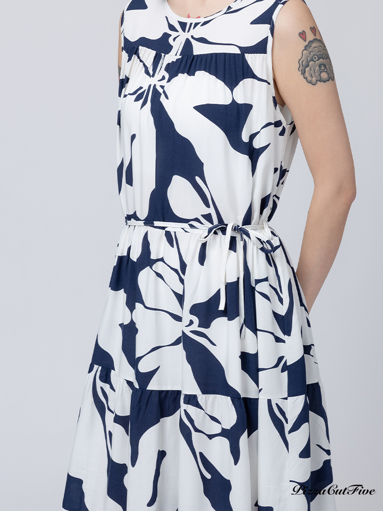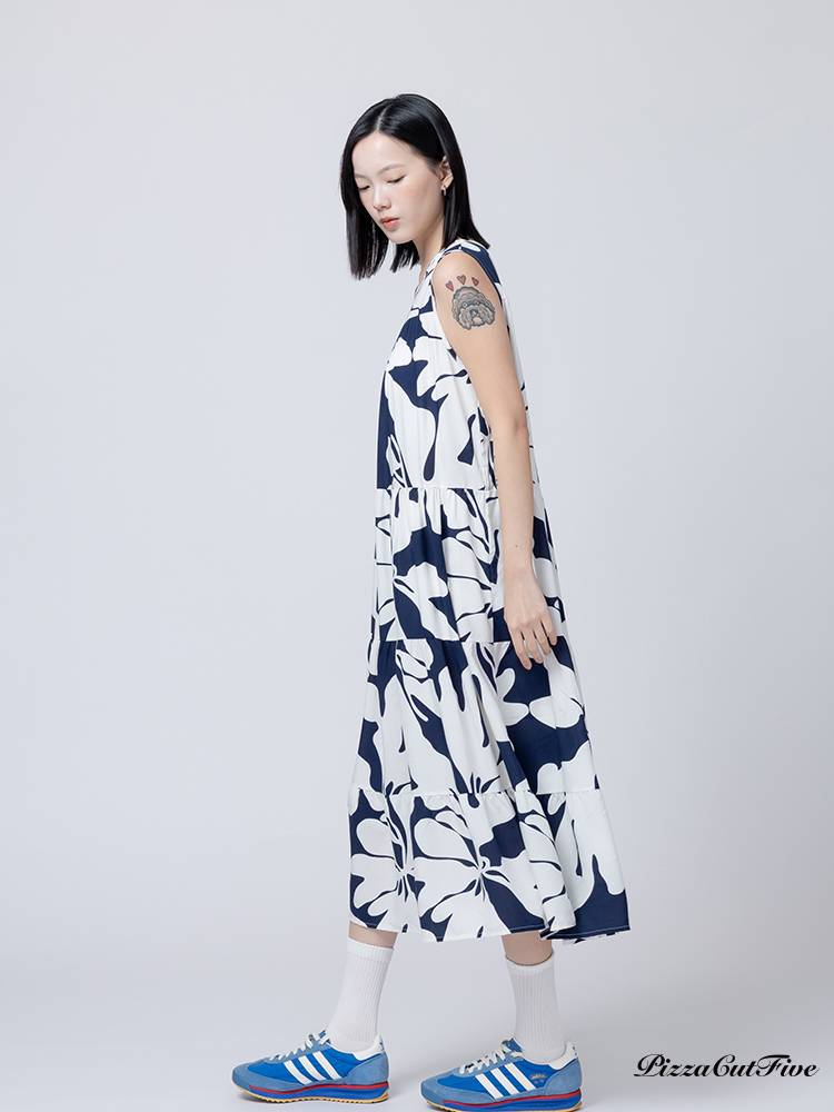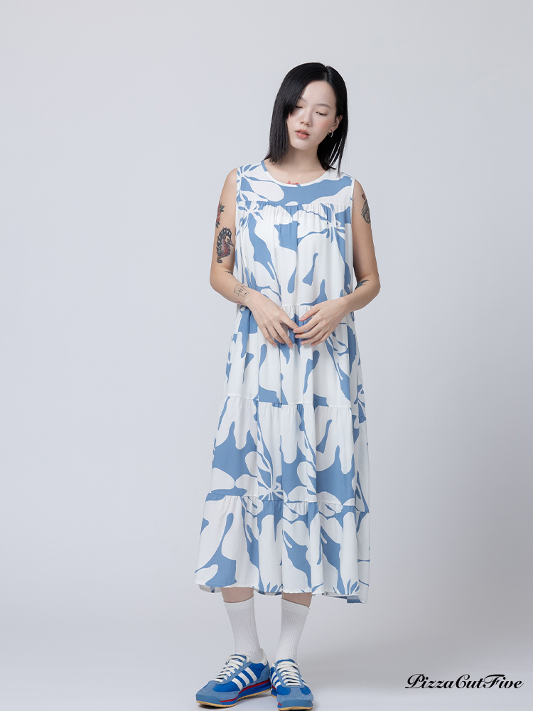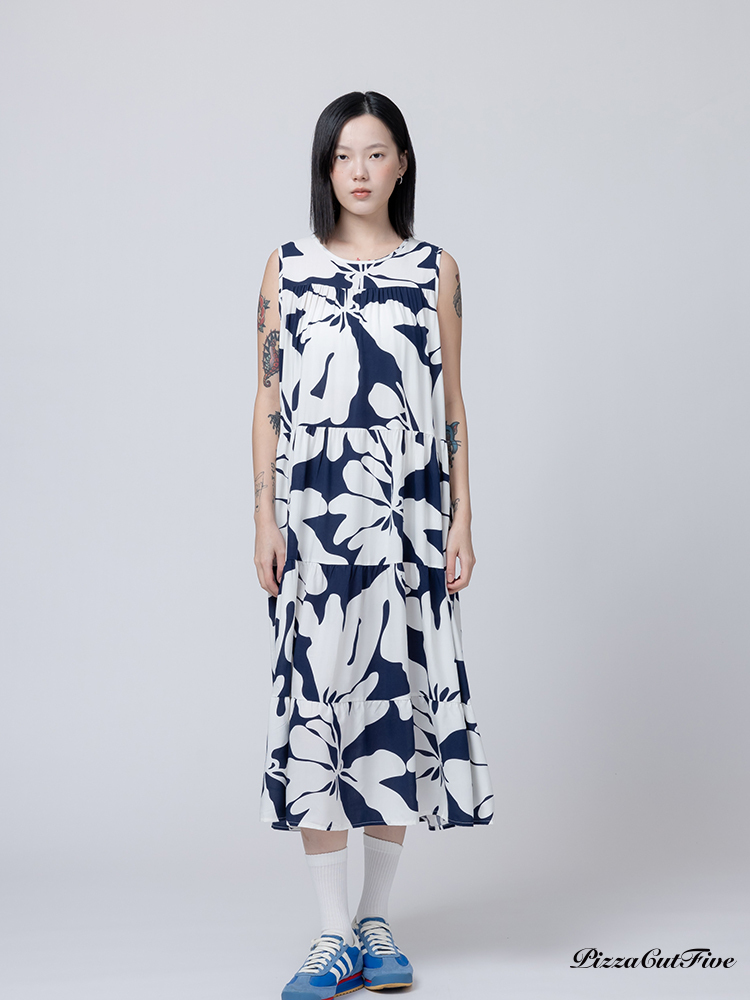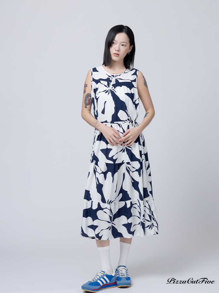 [兩件1580|涼感洋裝]花朵拼圖無袖蛋糕連身洋裝 PizzaCutFive PCF262486017