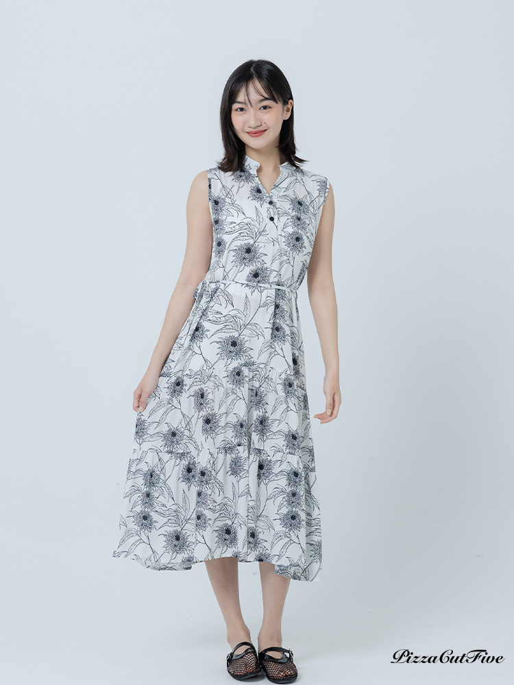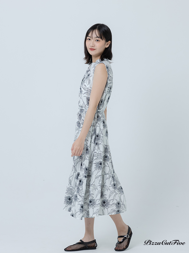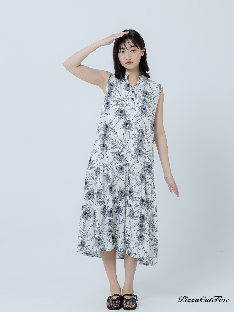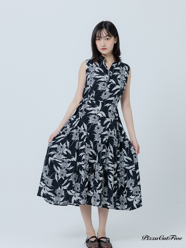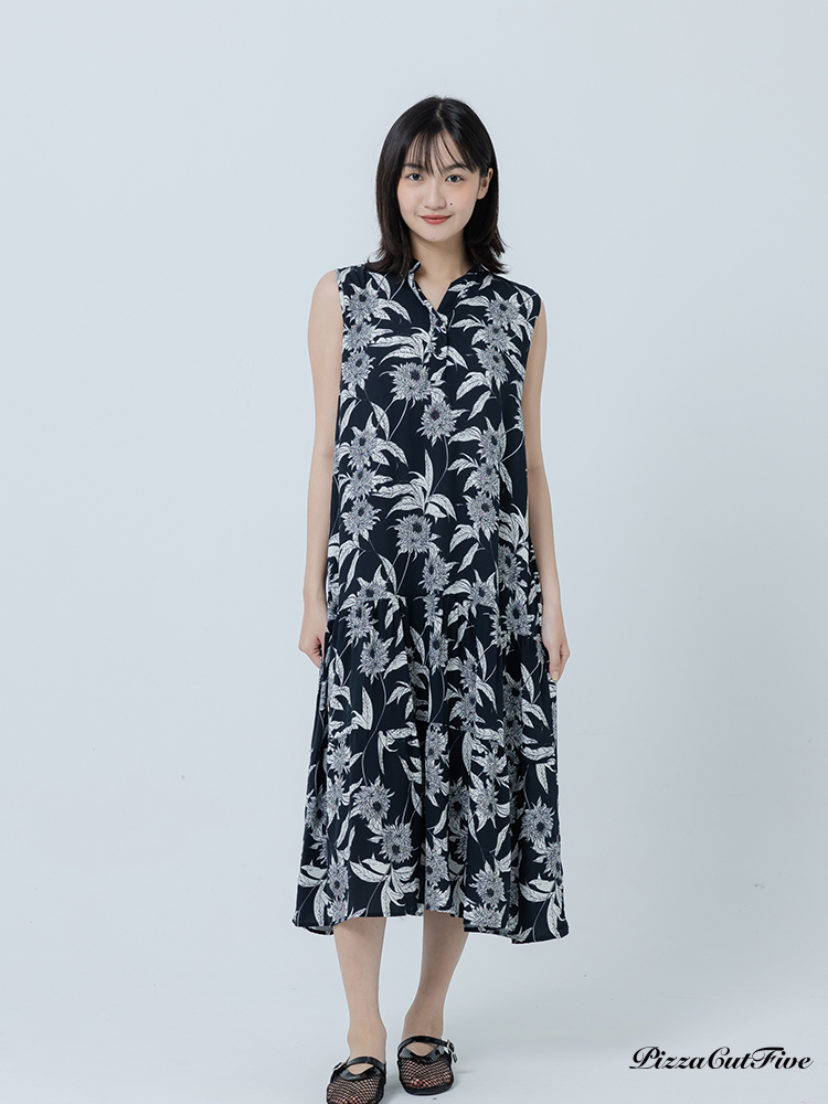 [兩件1580|涼感洋裝]復古線描花卉立領無袖蛋糕洋裝 PizzaCutFive PCF262486070