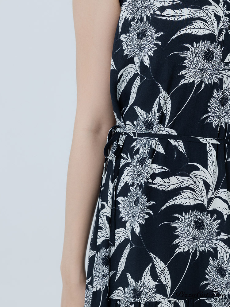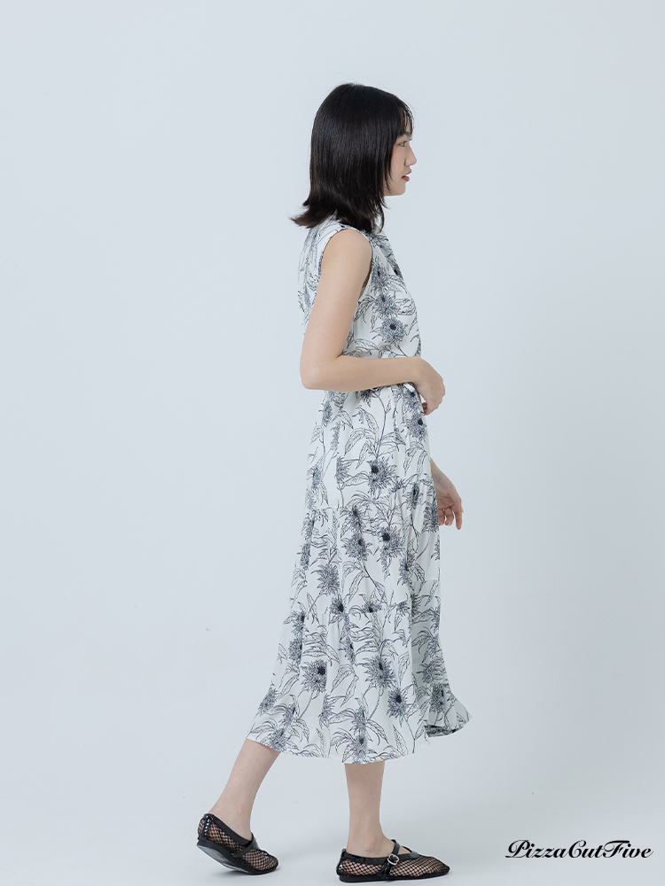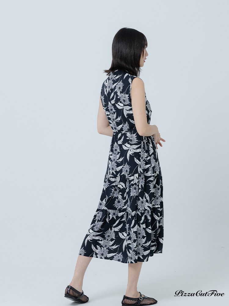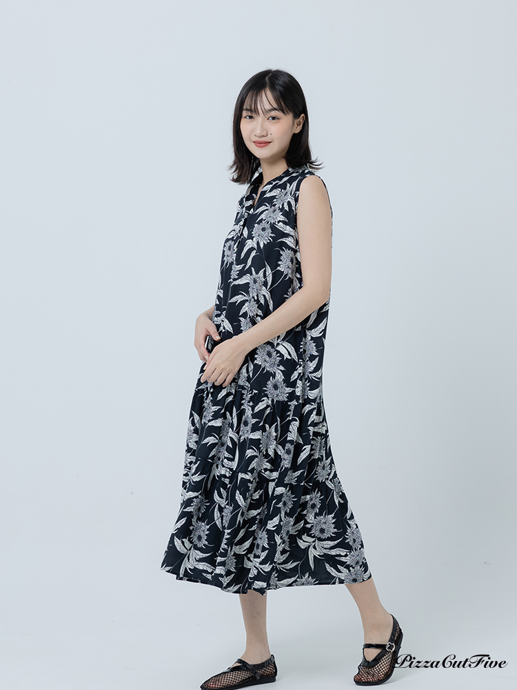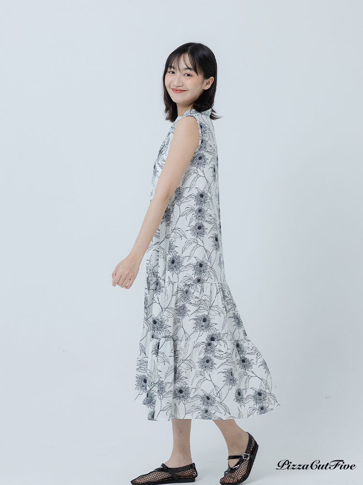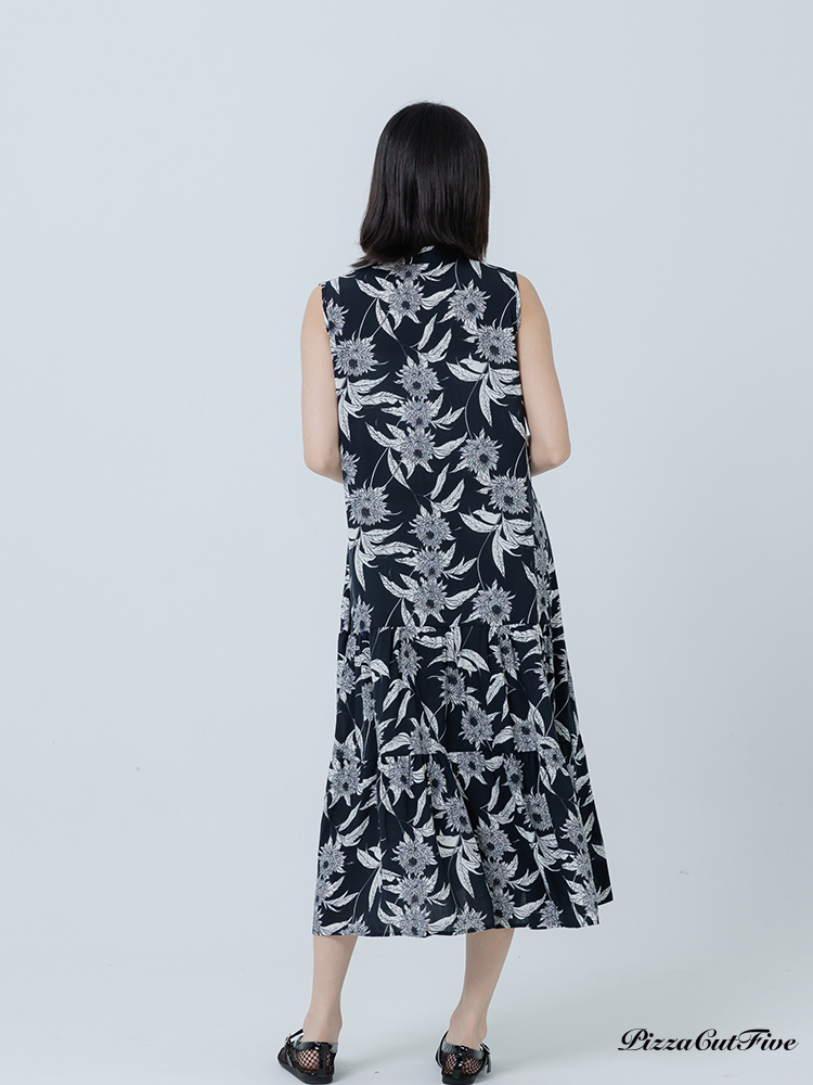 [兩件1580|涼感洋裝]復古線描花卉立領無袖蛋糕洋裝 PizzaCutFive PCF262486070