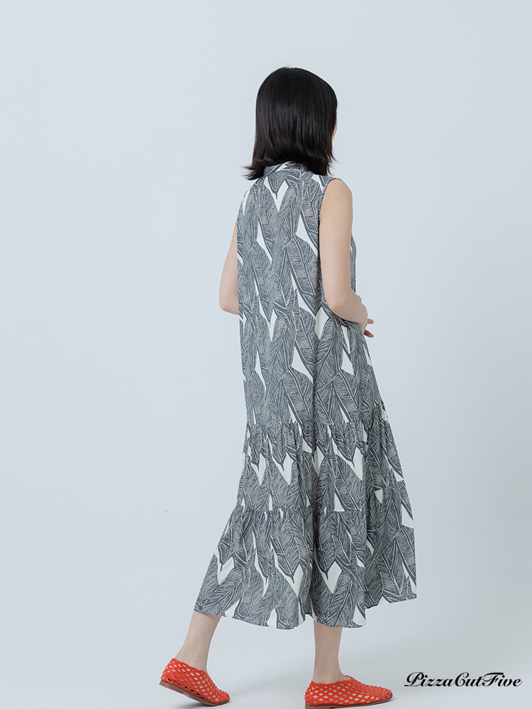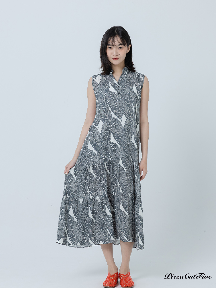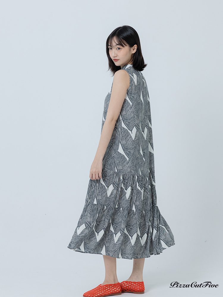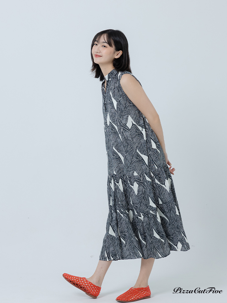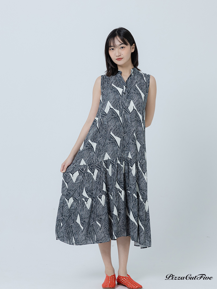 [兩件1580|涼感洋裝]幾何葉片立領無袖蛋糕洋裝 PizzaCutFive PCF262486071