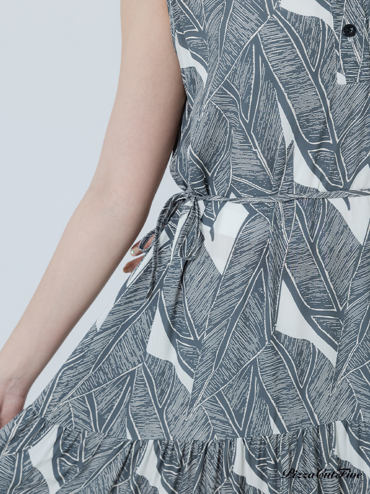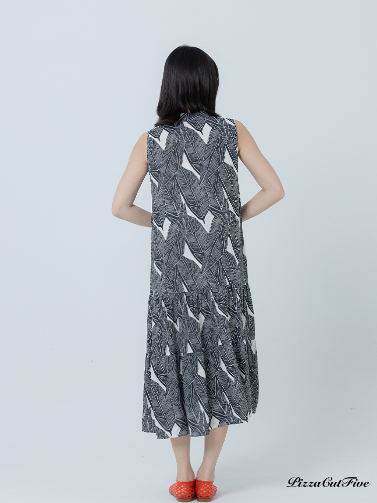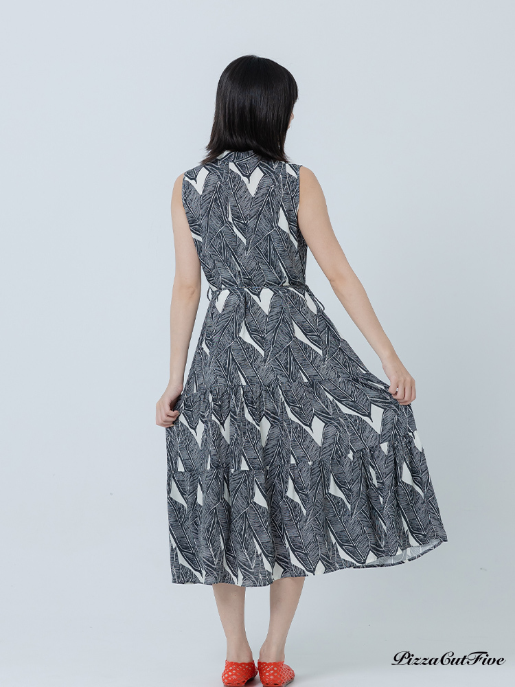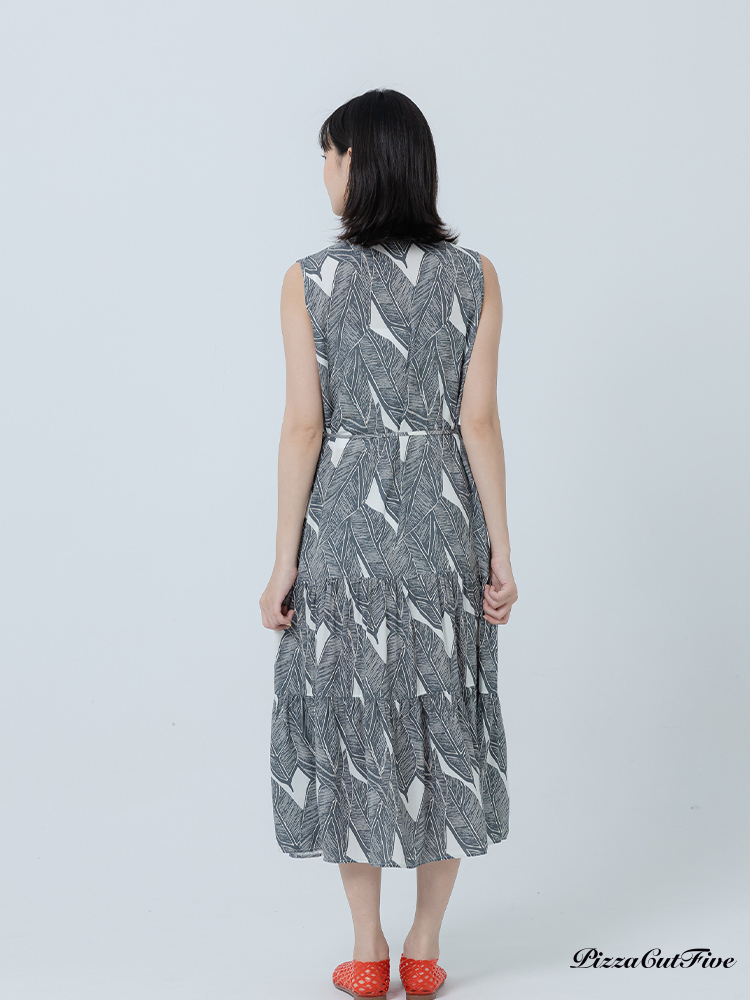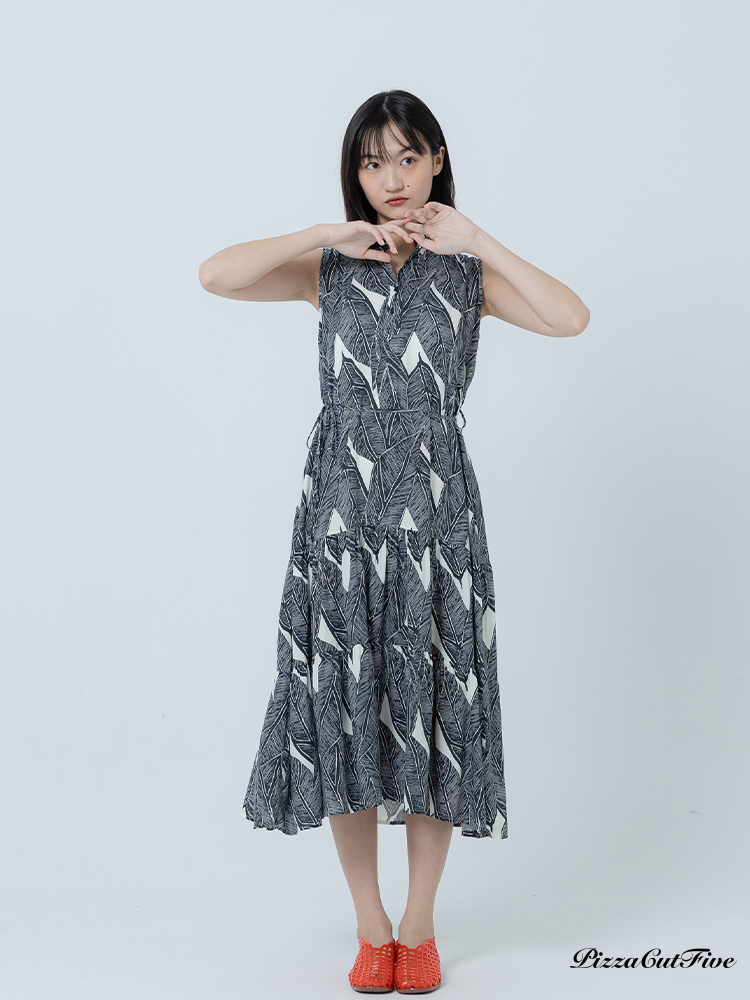 [兩件1580|涼感洋裝]幾何葉片立領無袖蛋糕洋裝 PizzaCutFive PCF262486071