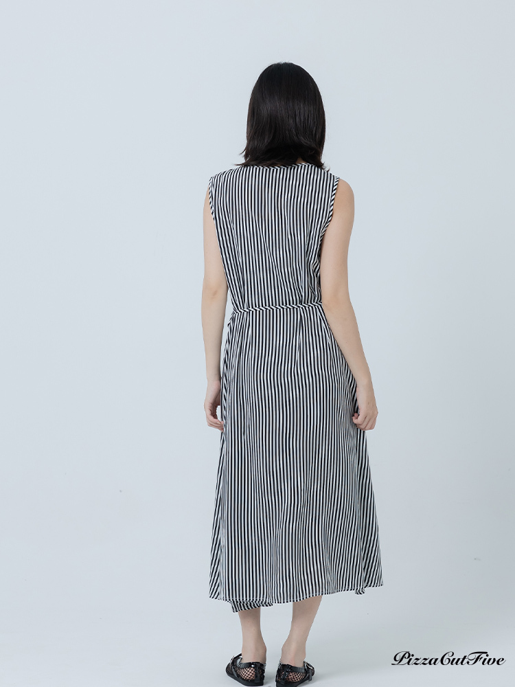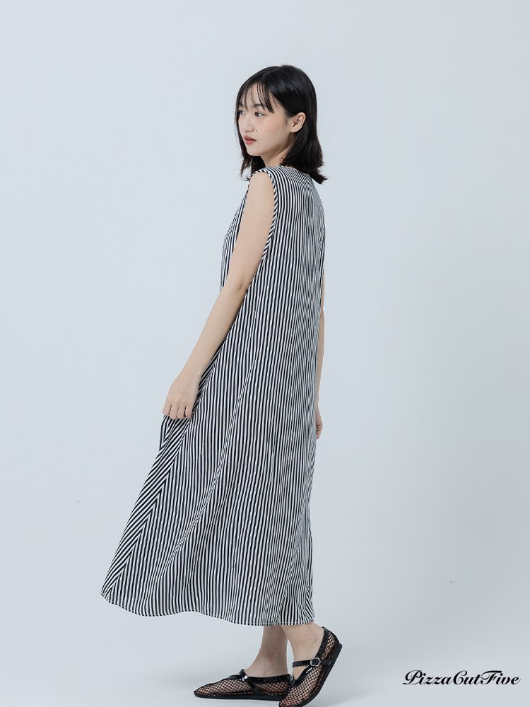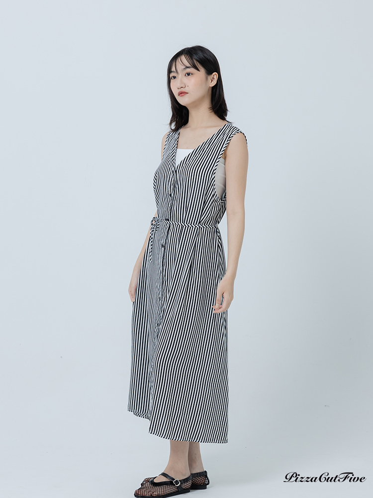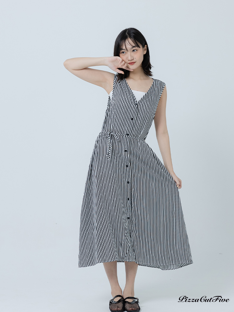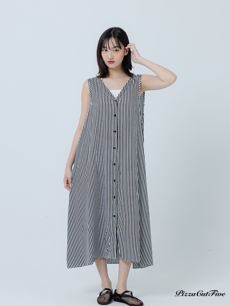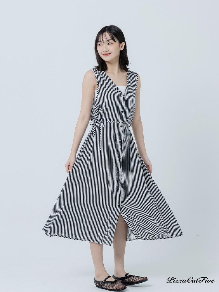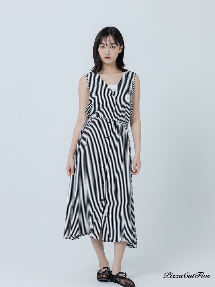 [兩件1580|涼感洋裝]經典直條紋V領排扣洋装 PizzaCutFive PCF262486076