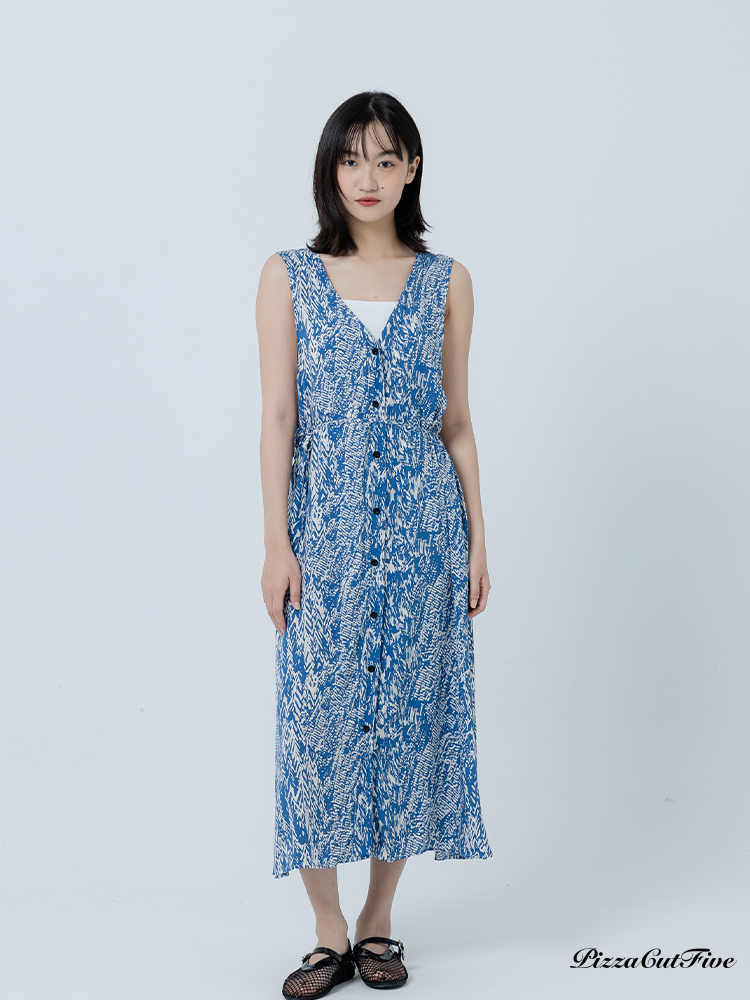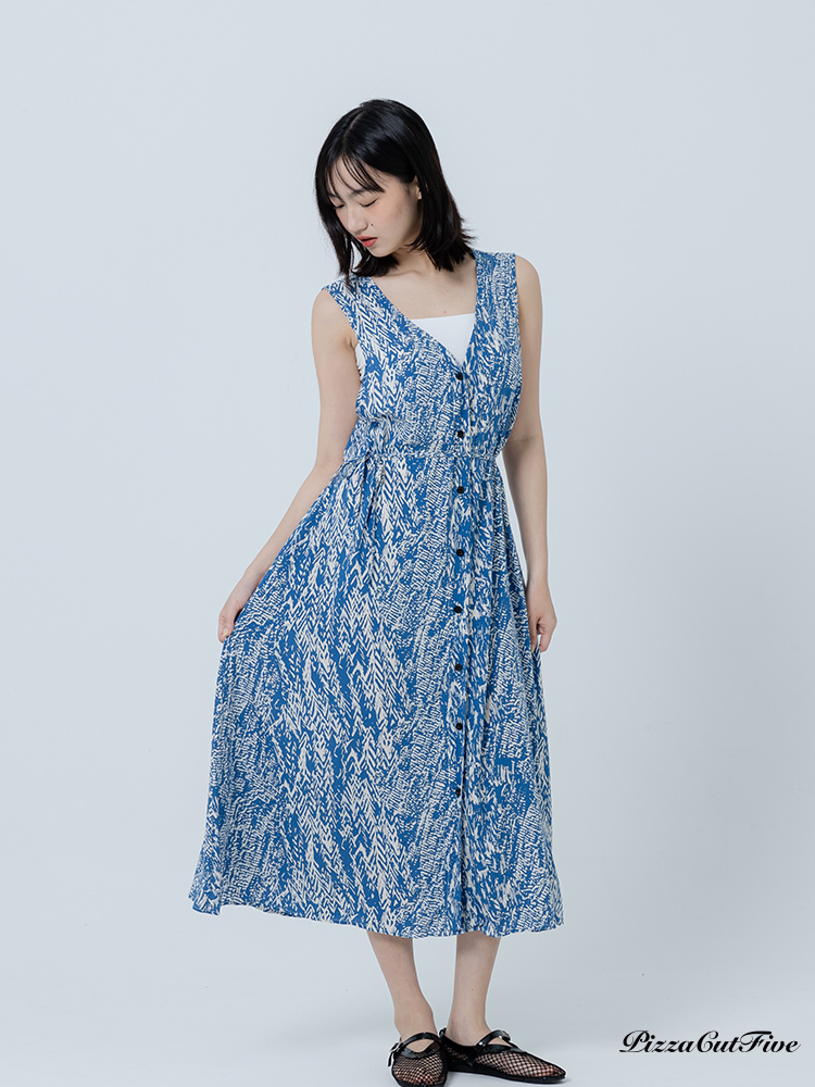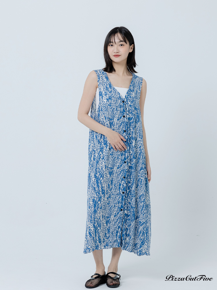 [兩件1580|涼感洋裝]不規則交錯V領排扣洋装 PizzaCutFive PCF262486077