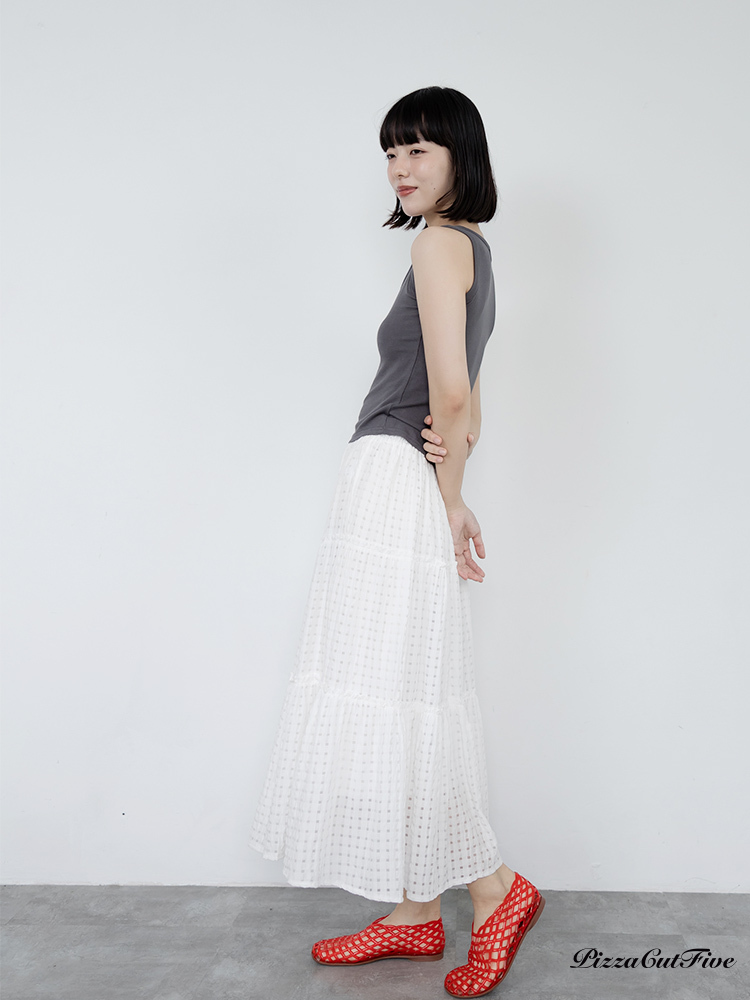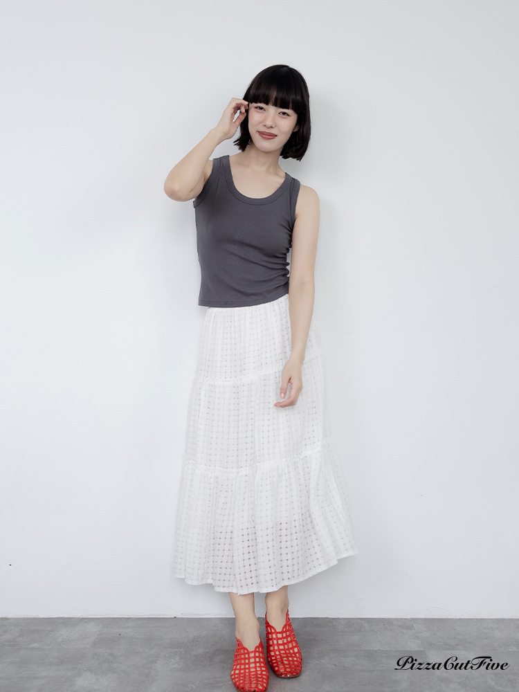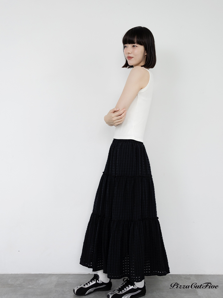 格紋透感中長裙 PizzaCutFive PCF262492022