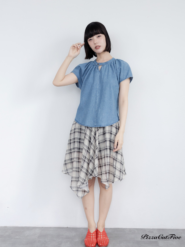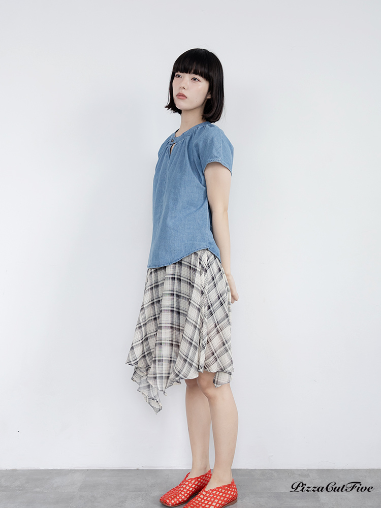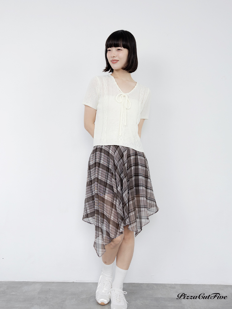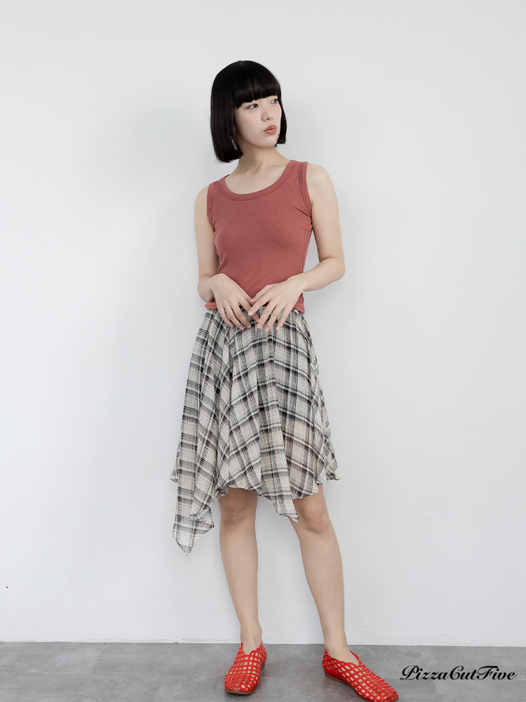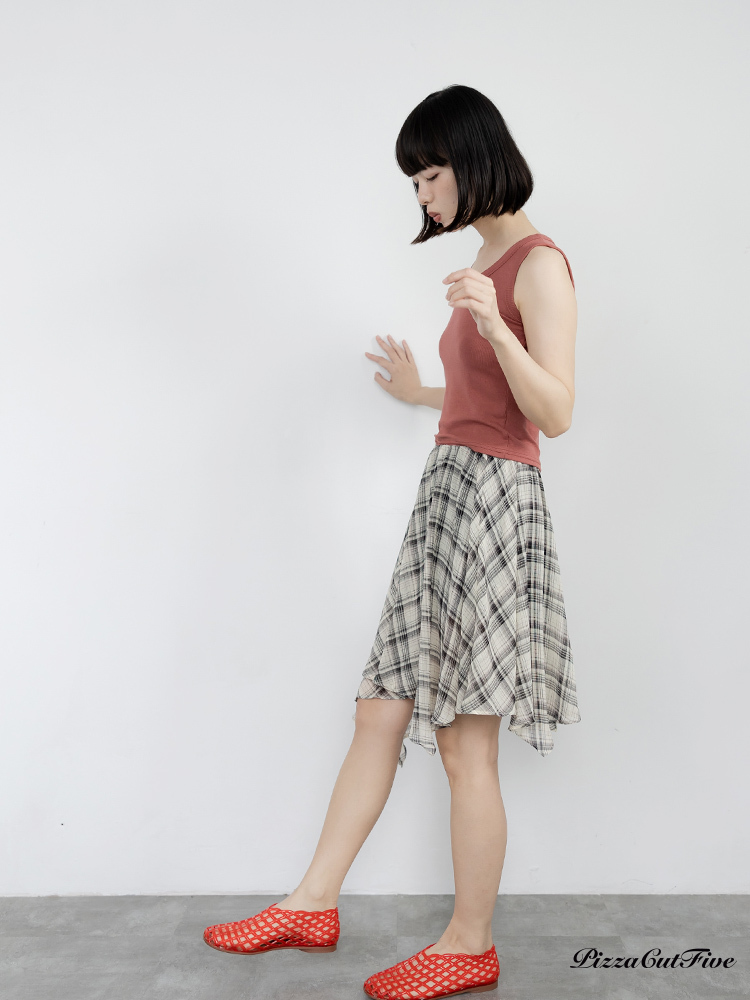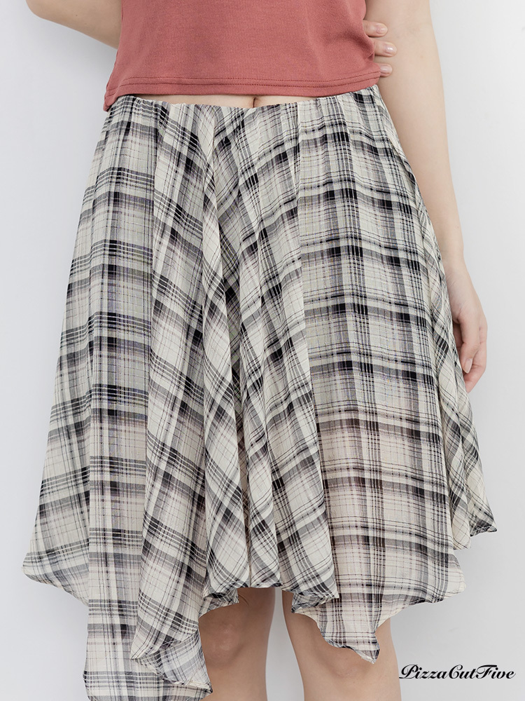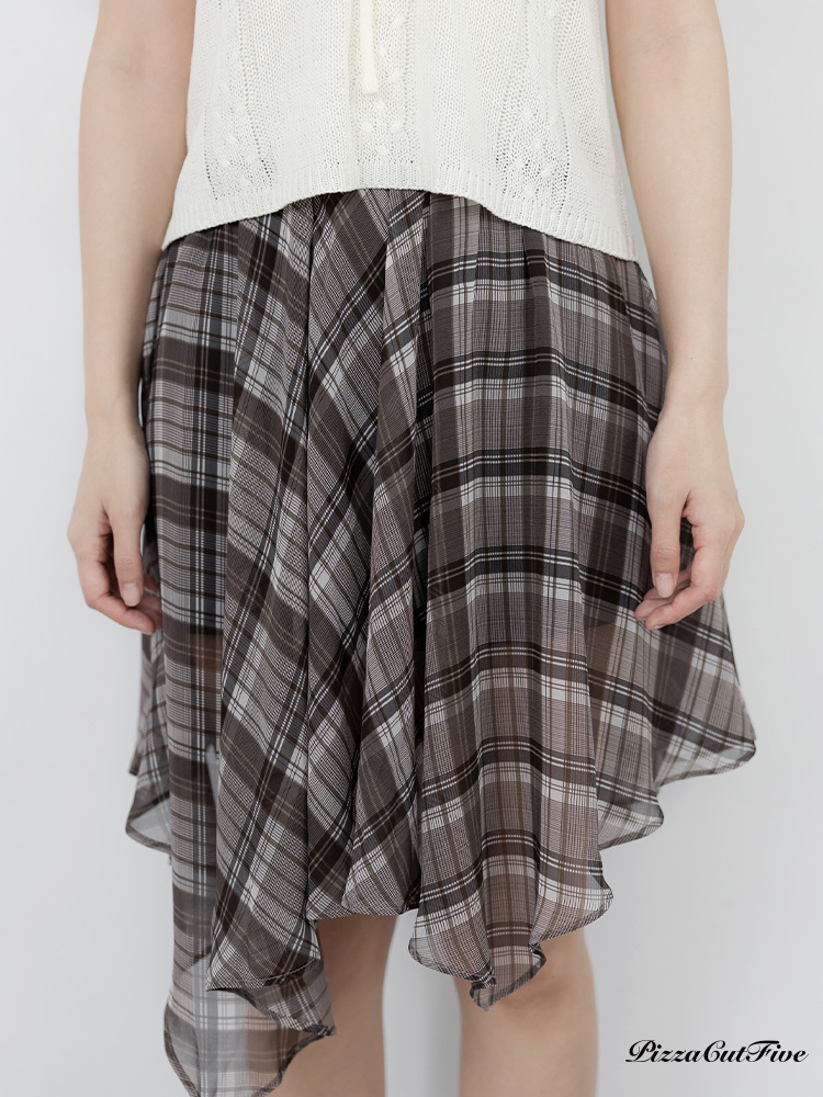 格紋斜擺中長裙 PizzaCutFive PCF262492030